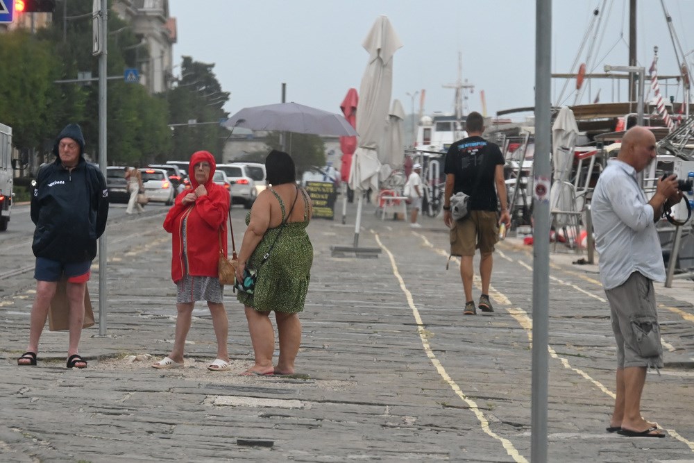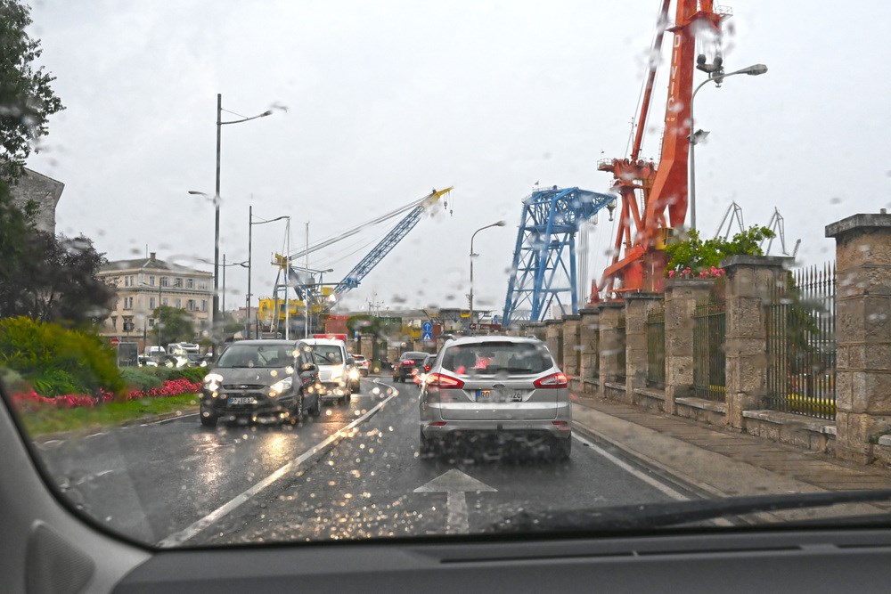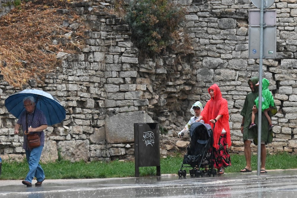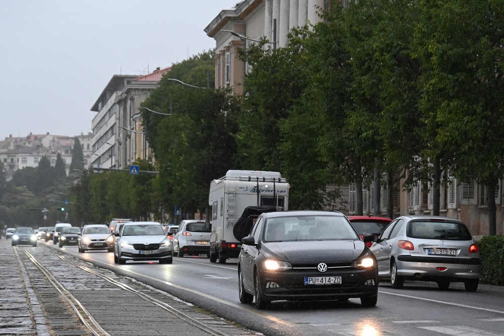 Kiša je u par navrata stigla (skoro) do Pule, no ovoga je puta dobrano zalila pulske ulice i ponovno stvorila gužvu u gradu. Iako je sada manje turista nego protekli mjesec i premda su godišnji mnogima gotovi te je "koncentracija" ljudi na prometnicama manja - gužva, iako u manjem obimu, ipak je bila prisutna.