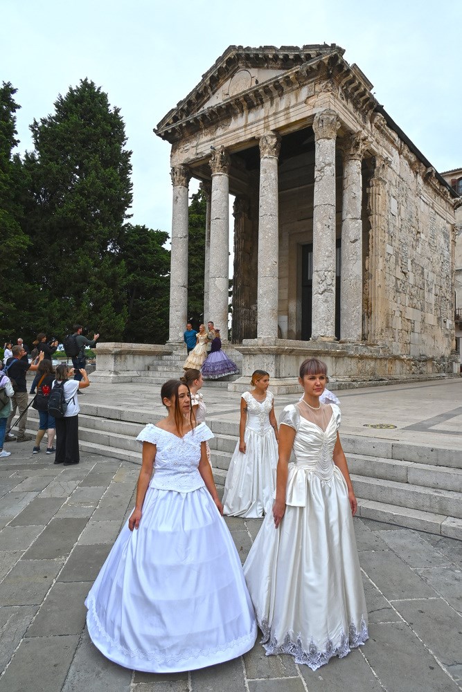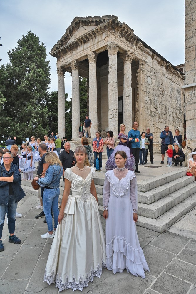 - Kako lijepo izgledaju te haljine, današnja je moda totalno bezveze naprama tim lijepim haljinama, komentirala je jedna gospođa, na što je njezina kolegica odgovorila "a gdje bi danas nosila tako nešto'", dok su ritmovi valcera i polki "zaposjeli" ovaj pulski trg.