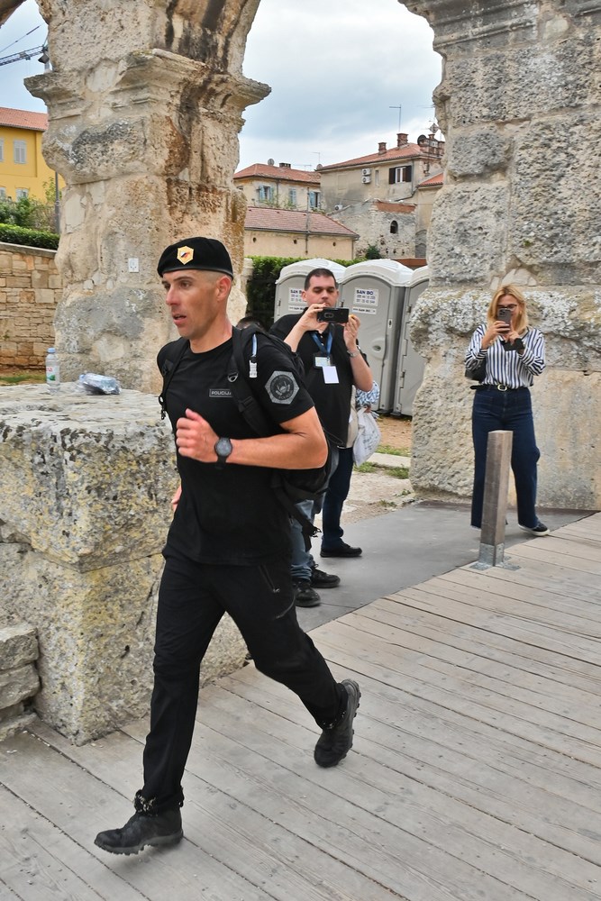 Slovenski policajac Jure Majdič prvi je danas dotrčao s Kamenjaka do Arene i ušao u cilj najvećeg policijskog natjecanja "Štit Domovine Pula 2024" koji se ove godine održao u Puli i Medulinu. Ovom 41-godišnjem Slovencu bila je to treća pobjeda za redom na ovom natjecanju u kategoriji stranih policijskih službenika.