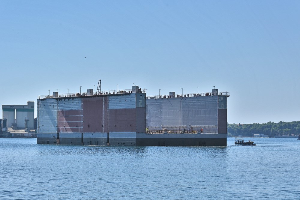 - Ovo je prvi put da Uljanik izrađuje plutajući suhi dok, a projekt je ugovoren 2021. godine. Zbog pandemije, završetak doka je nažalost kasnio, no sada je dok porinut i trebao bi biti predan do kraja listopada, izjavio je Hadžić dodajući da je novogradnja više manje većinsko opremljena na navozu, ide u završne detalje, pa slijedi priprema za teglju. S obzirom da dok nema svoj pogon, nakon porinuća slijede još završni radovi koji će ga pripremiti za tegalj u Izrael.
