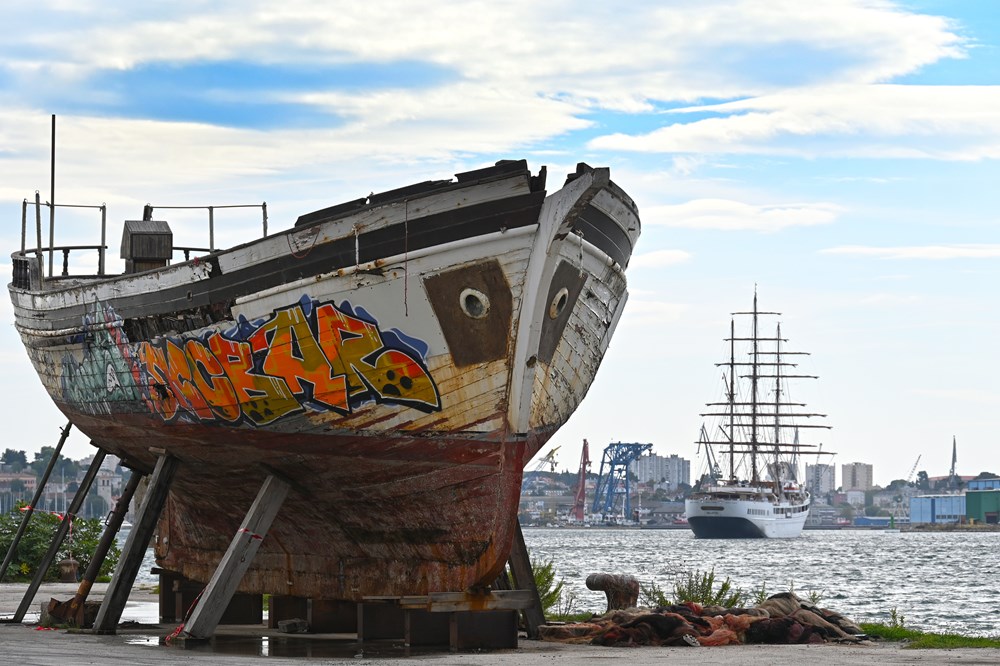 Danas se u pulskoj luci našao prekrasan jedrenjak Cloud II koji je plovio nemirnim morem, no ni valovi nisu pokvarili ovu veličanstvenu scenu.