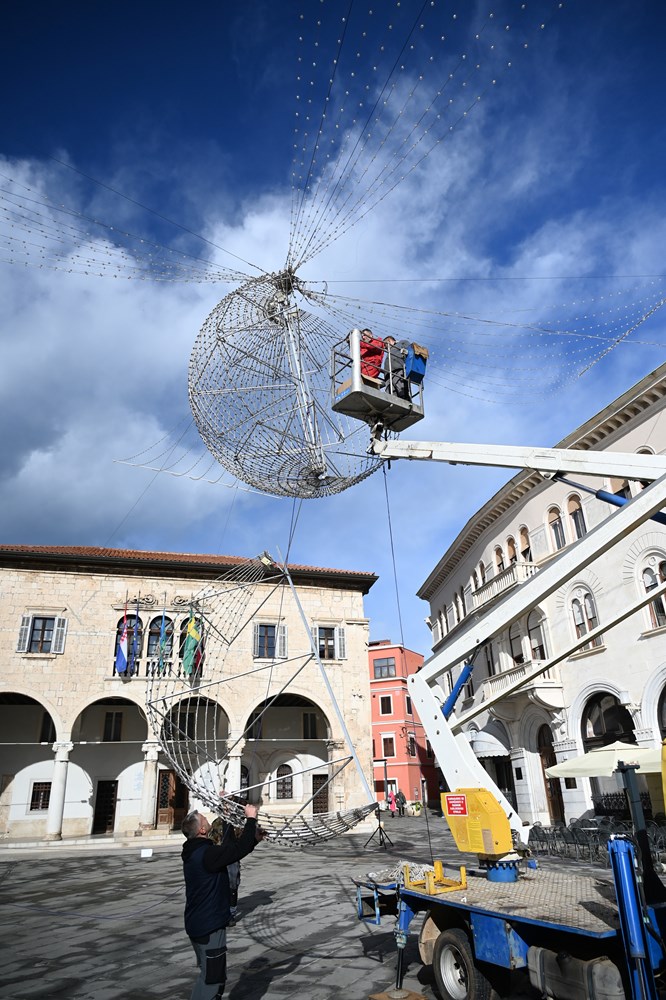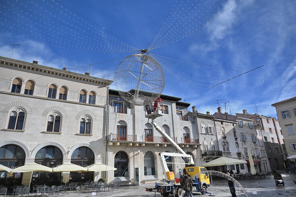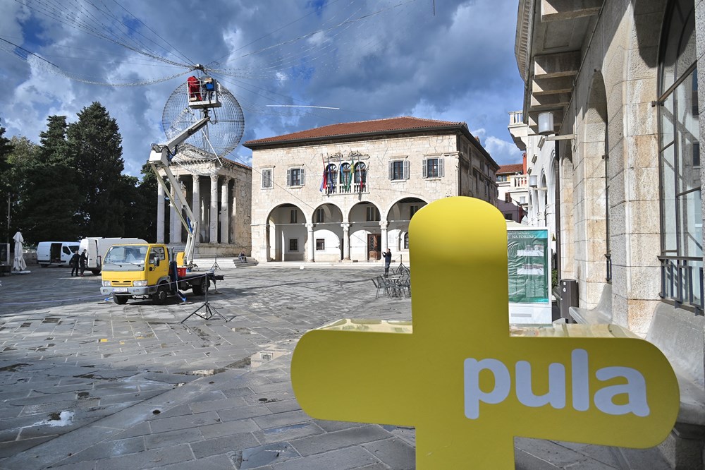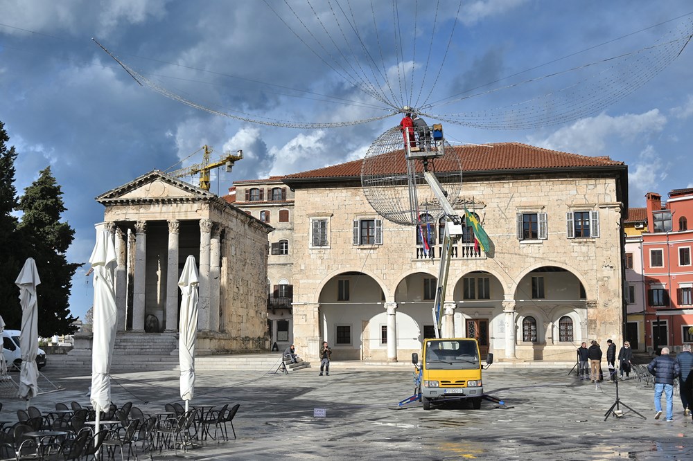 Na pulskom Forumu danas je postavljena velika viseća svjetleća kugla koja će krasiti trg tijekom adventa. Instalaciju je postavio Igor Brenko, poznat po svojim doprinosima uređenju javnih prostora grada.