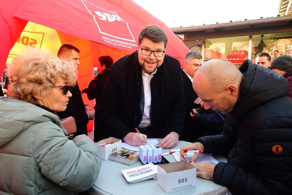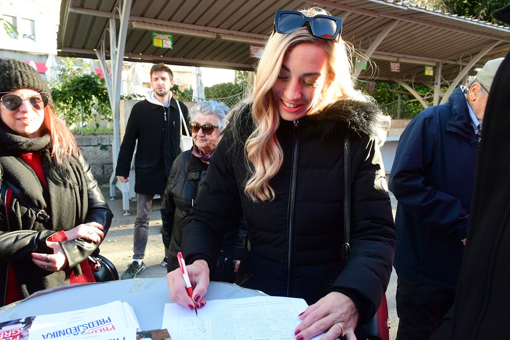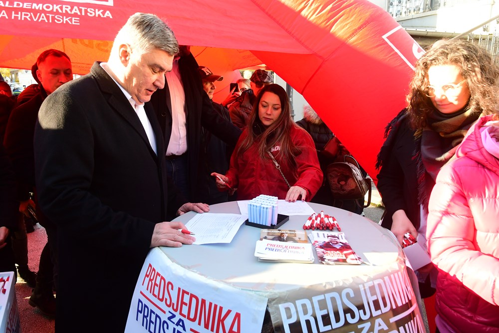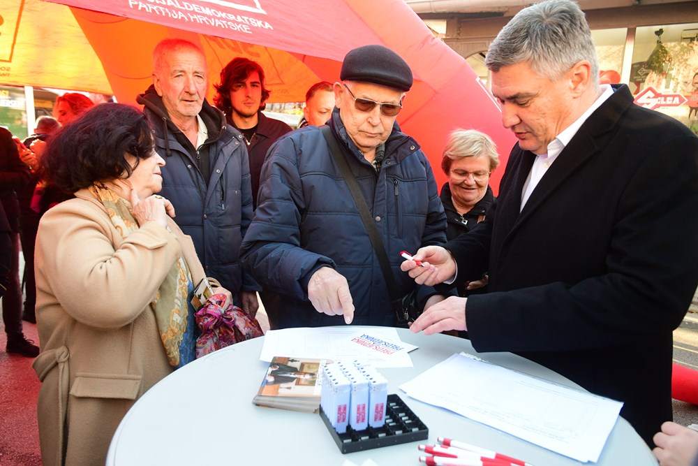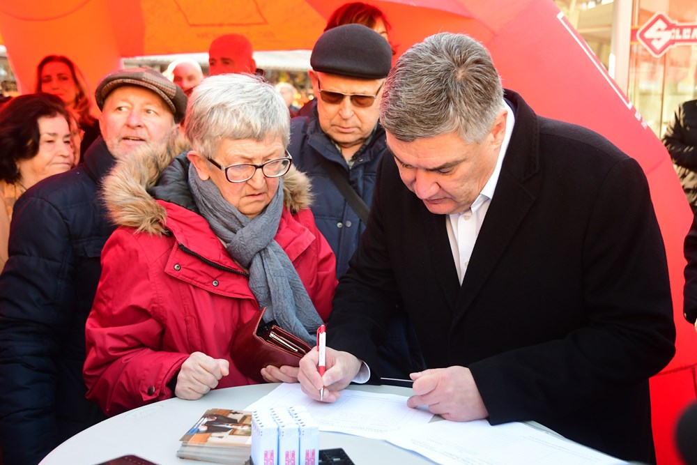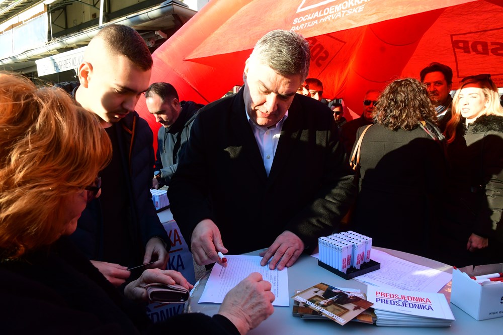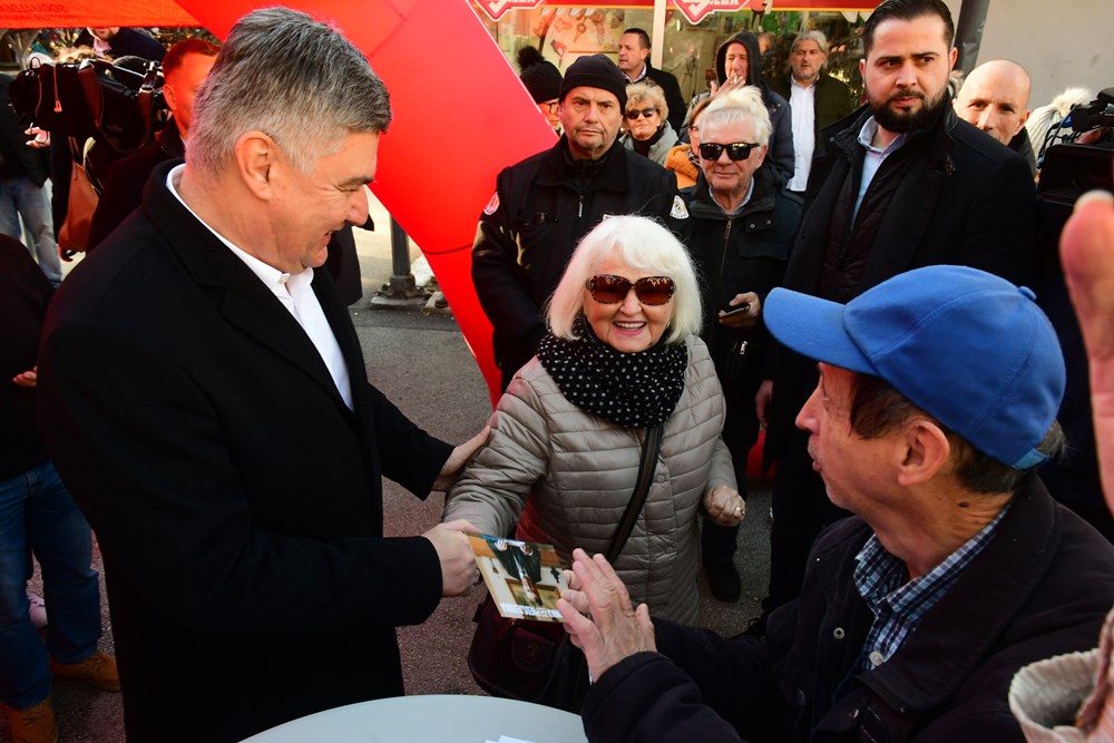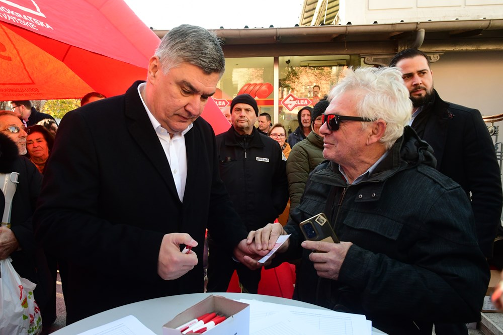 Potpisi za Zorana Milanovića prikupljali su se na pulskoj tržnici, ispod šatora pulskog SDP-a gdje je Predsjednika dočekao Peđa Grbin, kandidat SDP-a za pulskog gradonačelnika.