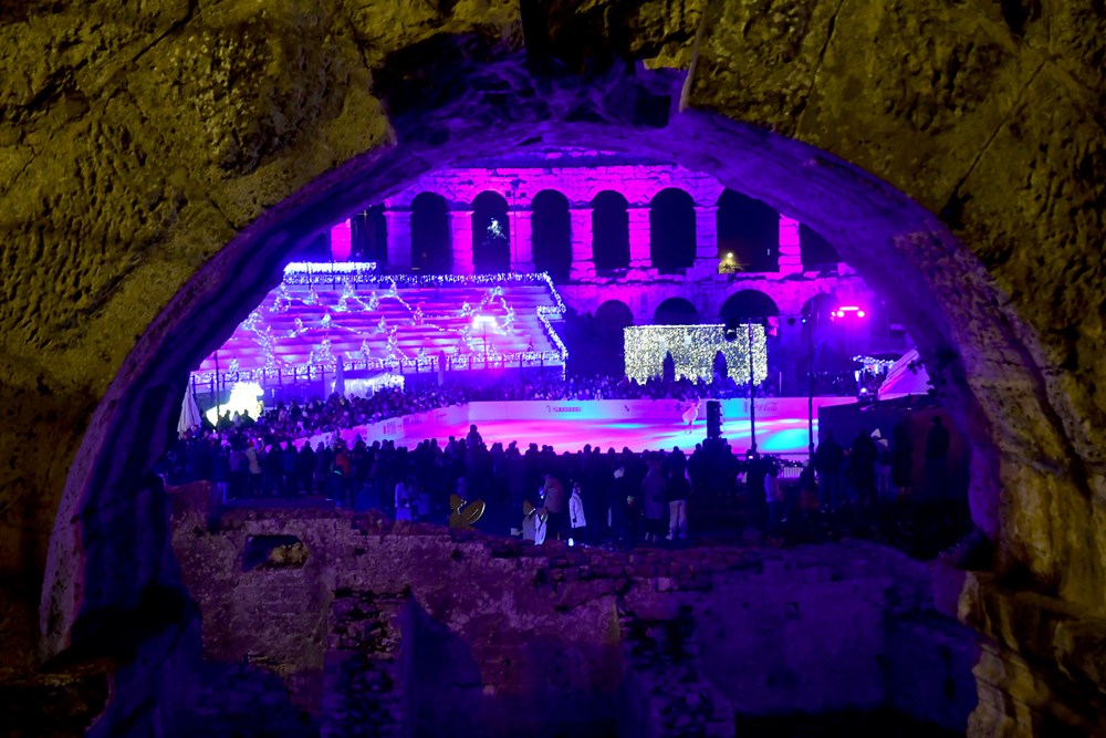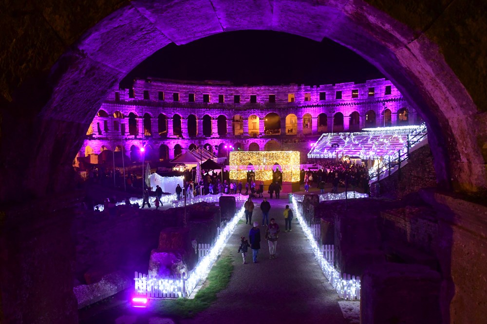 Pulska arena, inače jedinstvena, svjetska, glazbena pozornica na ponos svojih građana, ovog je petka obukla novo ruho. Povodom Adventa pretvorila se u posebnu zimsku i blagdansku kulisu u čijem se centralnom djelu smjestilo veliko klizalište površine čak 600 kvadratnih metara.
