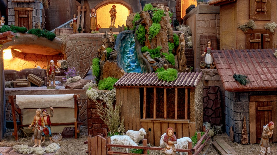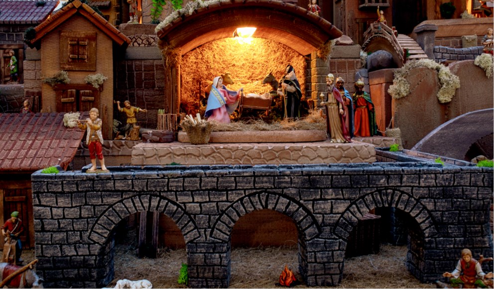 Jaslice se prostiru na 4 kvadratna metra, sačinjene su od preko 500 ručno izrađenih elemenata od kojih su neki i u pokretu, a sve je upotpunjeno svjetlosnim efektima. Osebujna vizualna kompozicija sastoji se od 125 figurica koje su se smjestile među 12 betlehemskih kućica uz prikaz štalice s Isusom, Marijom i Josipom. Mogu se vidjeti i prizori vrijednih obrtnika, mostovi, mala tržnica, osvijetljene spilje sa životinjama i trgovi sa živopisnim prikazom iz svakodnevnog života, dok vizualni dojam dodatno krasi vodopad i efekti vatre.