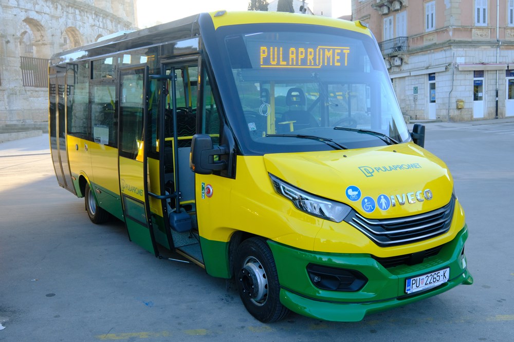 - Veliki autobus marke je Iveco, a dva manja su Feniks bus od istog od istog proizvođača. Pulaprometa ima 39 autobusa. Najstariji, 12 autobusa, nabavljeni su 2019. godine, a standardi u razvijenim gradovima govore kako bi, u prosjeku, 10 posto voznog parka trebalo obnoviti svake godine. Tim stopama ide i Pulapromet.