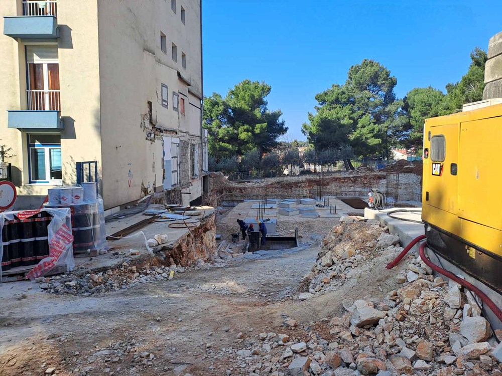 Nakon što je u prosincu srušen dio Doma, intenzivirani su radovi na budućoj novoj zgradi Doma Alfredo Štiglić, u Krležinoj ulici u Puli. Radnici tvrtke Radnik d.d. iz Križevaca rade na temelju buduće zgrade, a svjedoci smo da rade noću i za vrijeme loših vremenskih prilika. Kao što se vidi, temelji buduće zgrade ukopani su nekoliko metara u teren.