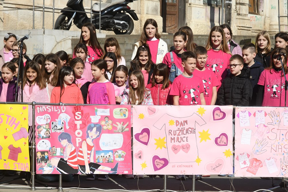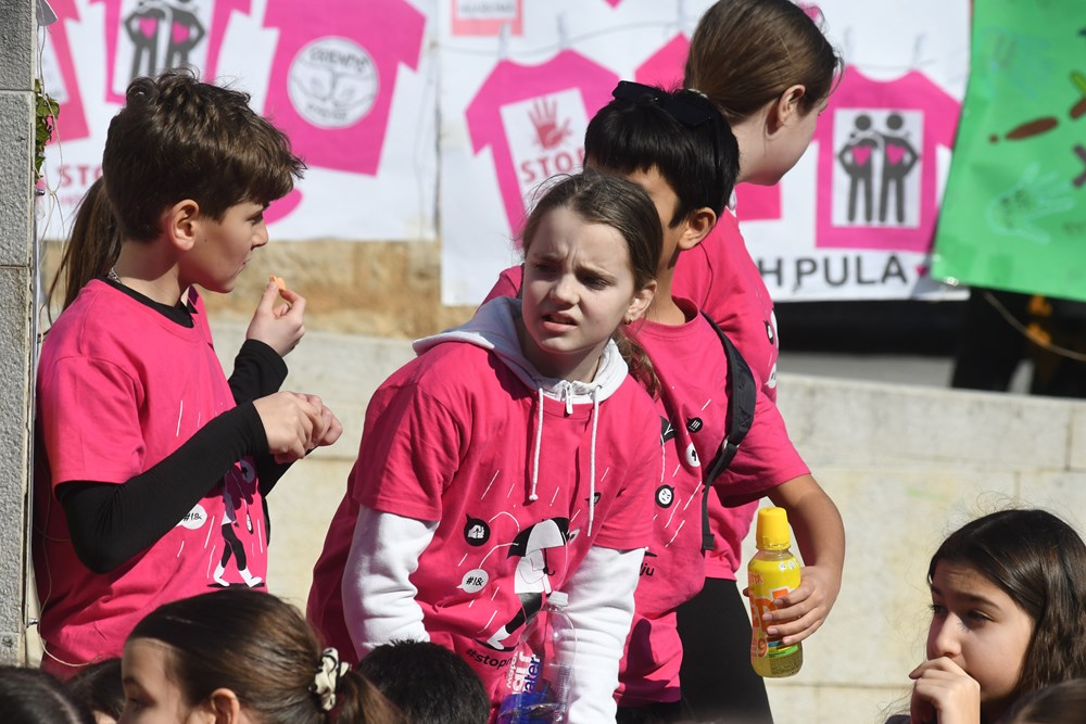 Osmu godinu za redom Policijska uprava istarska i Grad Pula danas su na prigodan način revijalnom utrkom pod nazivom ''Trkom protiv nasilja'' obilježili Dan ružičastih majica. Program se odvijao na Trgu Portarata, uz izložene radove učenika na temu i poruke protiv nasilja, a događaj su upotpunili zbor OŠ Kaštanjer i Studio glazbene kreativnosti Čarobna frula. Utrka se održavala na trasi: Trg Portarata - Giardini - Istarska ulica - Amfiteatarska ulica - Carrarina ulica - Giardini - Trg Portarata.