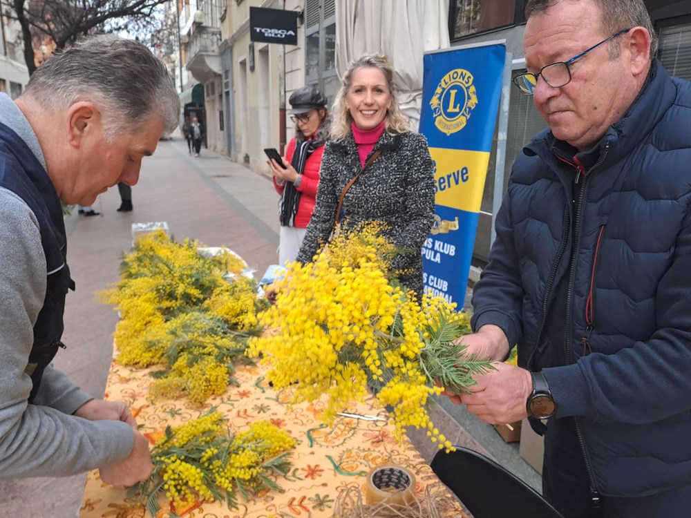 Lions klub Pula već tradicionalno početkom kalendarske godine organizira donatorske akcije na Gradskoj tržnici, nudeći sugrađanima buketiće mirisnih žutih vjesnika proljeća - mimoza u zamjenu za simbolične iznose koji se potom usmjeravaju na adrese potrebitih.