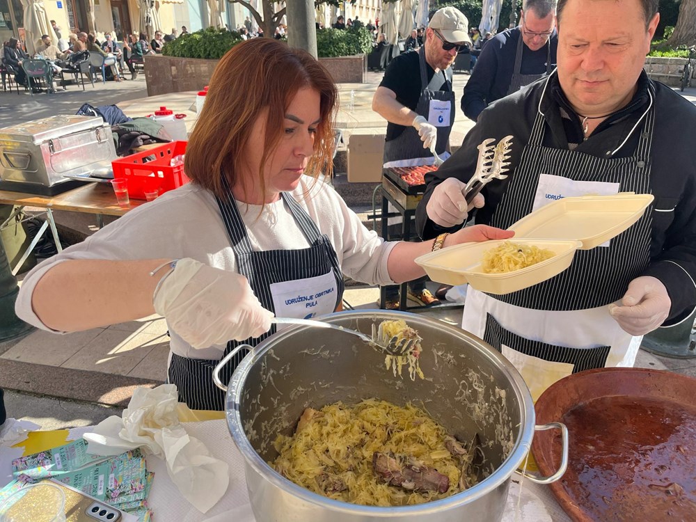 Lijepo i toplo vrijeme dodatno su doprinijeli većoj posjeti ovog događaja za koji su najviše bili zainteresirani pulski umirovljenici, a i kako ne kada je obrok koštao simboličnih pet eura, a moglo se kupiti kobasice, kapuz, fritule i kroštule te popiti čašica vina. Iz priloženog se moglo vidjeti kako je događaj razveselio okupljene, ali i privukao brojne slučajne prolaznike.