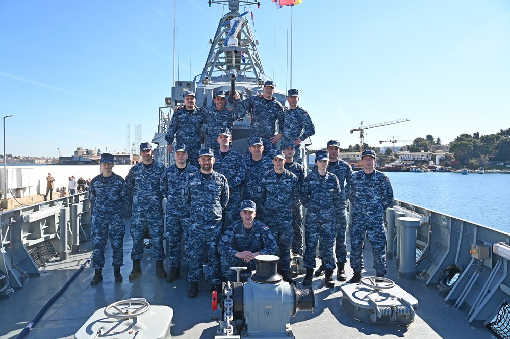 Brod OOB-32 Umag doplovio je u Pulu uz pratnju brodice GB-201 Modrulj 1, a na lukobranu luke Vargarola brod su dočekali obitelji, prijatelji članova posade te kolege iz postrojbi Hrvatske ratne mornarice smještenih u vojarni. Tijekom uplovljavanja i pristajanja, brod je bio pozdravljen zvucima sirena drugih plovila Hrvatske ratne mornarice koji se nalaze na vezu u luci te svečanim postrojem pripadnika HRM-a.