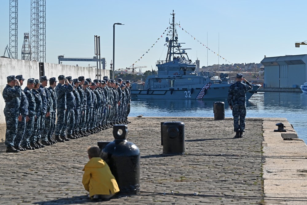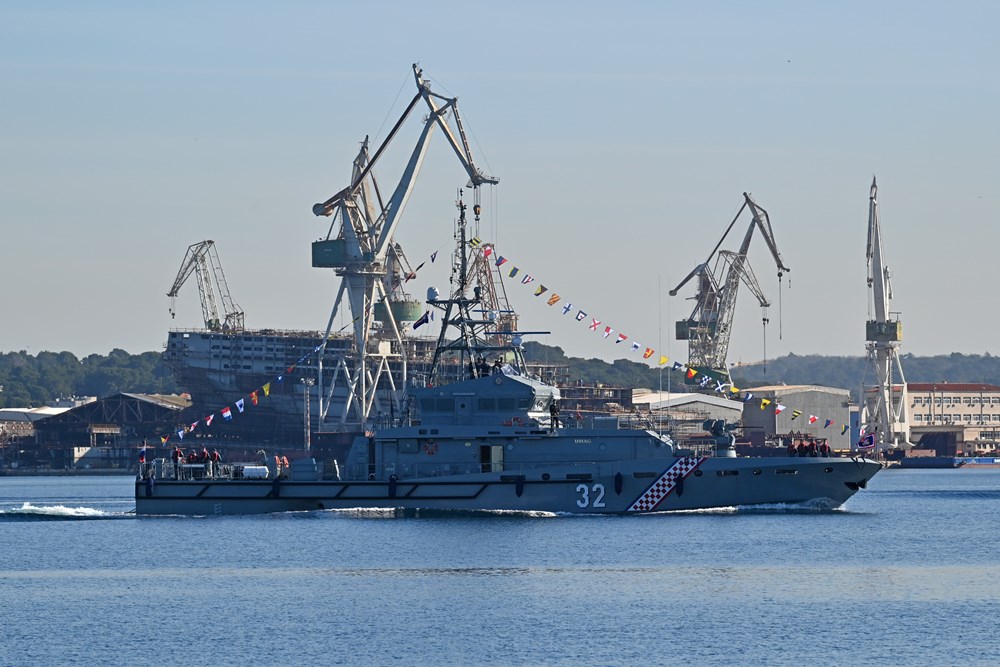 U vojarni Vargarola u Puli danas, 5. ožujka održan je svečani doček za posadu i obalni ophodni brod OOB-32 Umag. Ovo je bilo prvo uplovljavanje broda Obalne straže Republike Hrvatske u svoju matičnu luku, nakon svečane primopredaje broda 17. siječnja 2025. u Splitu, kada je brod službeno prešao u sastav Hrvatske ratne mornarice.