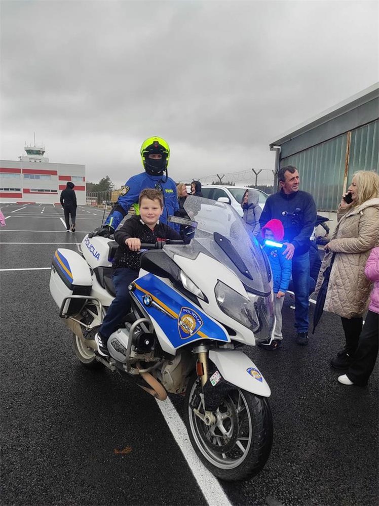 Unatoč nepovoljnim vremenskim uvjetima, policijski motocikl privukao je nemali broj djevojčica i dječaka koji su poželjeli sjesti na policijski motocikl, staviti na glavu policijsku kacigu i fotografirati se za uspomenu na pisti Zračne luke Pula.