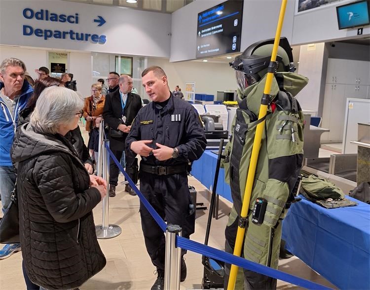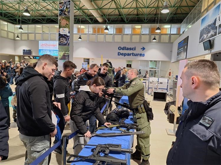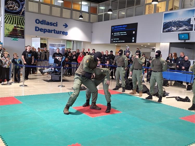 Seriju pokaznih vježbi policije započeli su mladi polaznici Policijske škole "Josip Jović" koja djeluje u sklopu Policijske akademije "Prvi hrvatski redarstvenik". Pokazavši vrhunsku vještinu i spretnost u rukovanju kratkim i dugim naoružanjem iako su još u fazi školovanja, zaslužili su pljesak brojne publike koja se okupila u unutrašnjem, putničkom prostoru Zračne luke Pula.