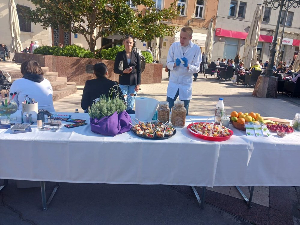 I zbilja, zahvaljujući tom zajedničkom radu i trudu, cijela je tržnica bila u znaku boja, mirisa i okusa, tako da su nazočni mogli uživati u blagodatima aromaterapije, opuštajuće masaže ruku, a učenicima je to bila dobra praksa umjetničkog izražavanja kroz šminkanje inspirirano prirodom, a da dan bude bolji, pobrinuli su se budući nutricionisti zdravim obrocima. Napravili su domaću granolu od badema, citrusa i jagoda - za zdravi početak dana.