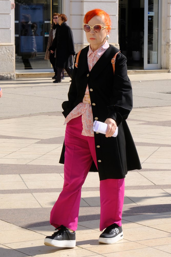 Još uvijek se nose jakne s krznenim dodacima koje pružaju udobnost i štite od povremenih naleta bure, dok su kratki kaputi i dalje omiljeni među damama koje vole praktičnost uz dozu elegancije. Posebno se istaknula jedna gospođa koja je svojim minimalističkim pristupom odijevanju pokazala kako jednostavnost može biti izrazito efektna.