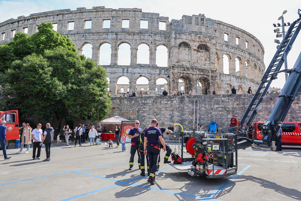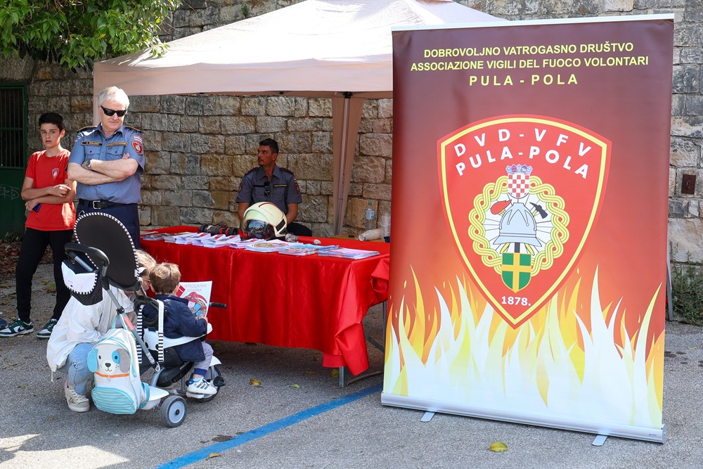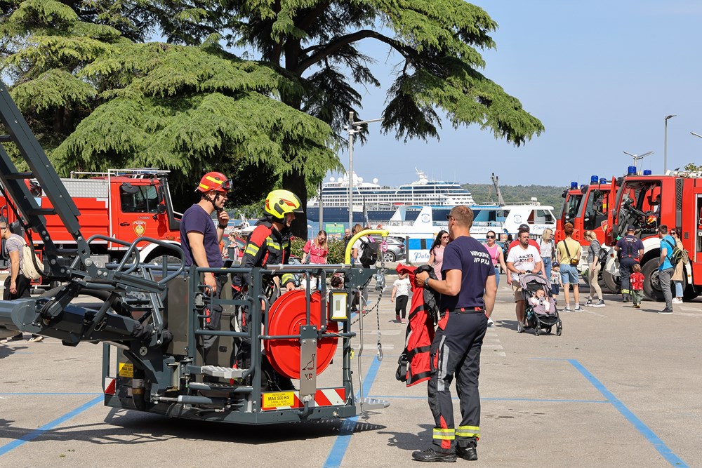 - Prezentiramo našu opremu i dio naših sposobnosti. U planu su različite vježbe - vidjet ćemo koliko će biti najmlađih, pa ćemo njima prilagoditi nešto zanimljivije, a kasnije možda i za one malo starije, rekao je zapovjednik Javne vatrogasne postrojbe Pula, Ivica Rojnić. Dodao je da će tijekom dana posjetitelji imati priliku vidjeti vježbe gašenja požara, tehnike spašavanja s visina, demonstracije spašavanja iz vozila i rukovanja vatrogasnom opremom. Iako ovaj put nisu uspjeli dovesti specijalno vozilo za rezanje limenih karoserija, jedan dio automobila poslužio je kao scenografija za pokaznu intervenciju.