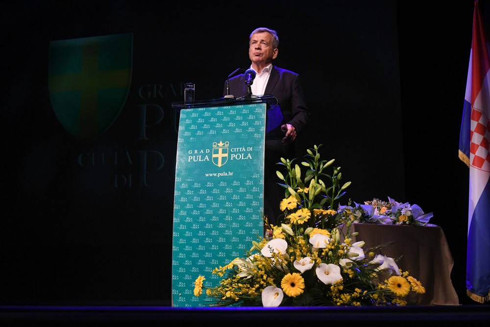 Bila je ovo prilika da se skupu obrati i župan Boris Miletić koji je također svima čestitao Dan Grada, 80 godina oslobođenja Pule, za koji je rekao da je veliki datum za ovaj grad te spomenuo i 9. svibnja - Dan Europe koja slavi vrijednosti antifašizma i pobjede nad fašizmom.