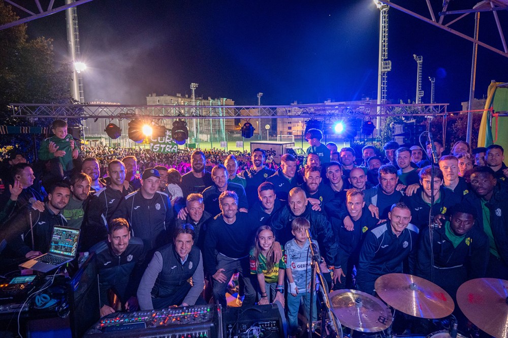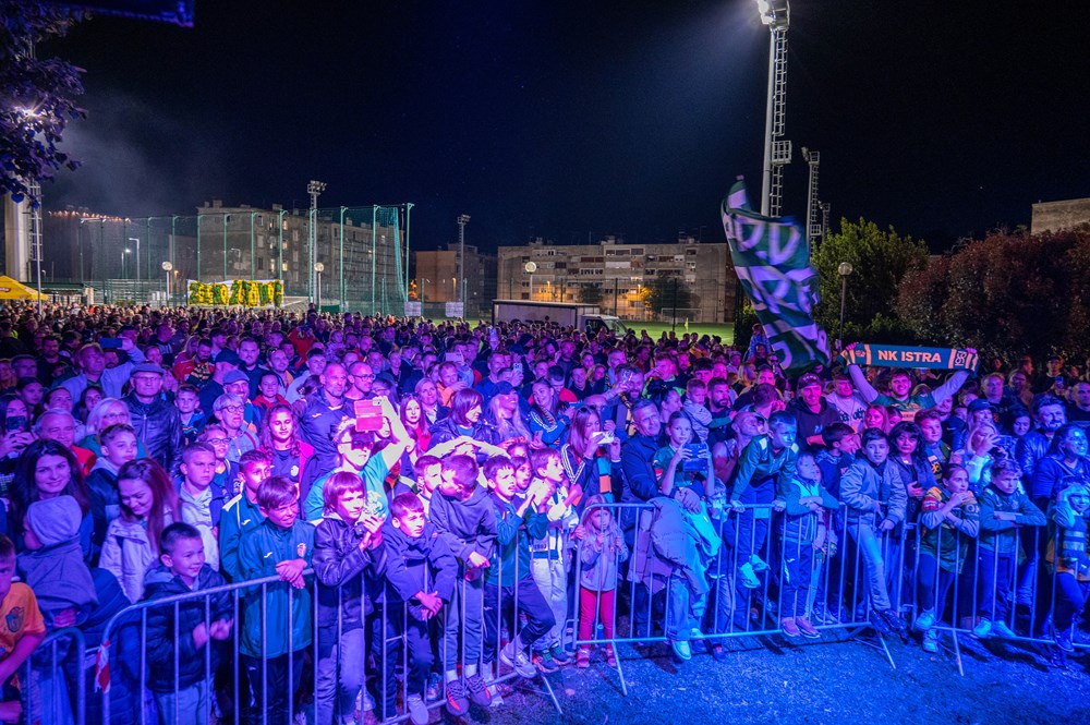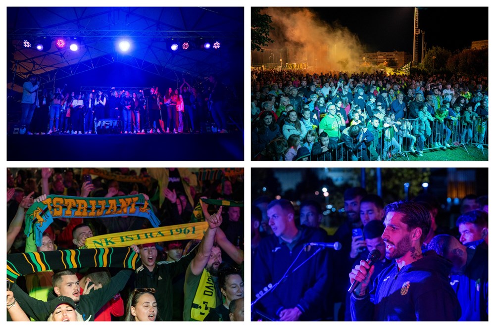 Za dobru atmosferu i odlično raspoloženje bili su zaduženi Lucky bend i DJ Spada, a večer su začinili i drugi glazbeni gosti - od Sergia Pavata i Vesne Nežić Ružić do Lima Lena, Shadow MC-a i Prge. Večer je bila nabijena pozitivom, a brojni okupljeni u glas s izvođačima su pjevati "Noći istarske", "Ča im delamo", "Brajde", "Neka sviri roženica", "Za ljubav treba imat dušu" i druge pjesme koje se na stadionu mogu čuti nakon svake pobjede naših "zeleno-žutih". A vrhunac slavlja bio je spontani vatromet koji je pulsko nebo nakratko obojao plamtećim bojama.