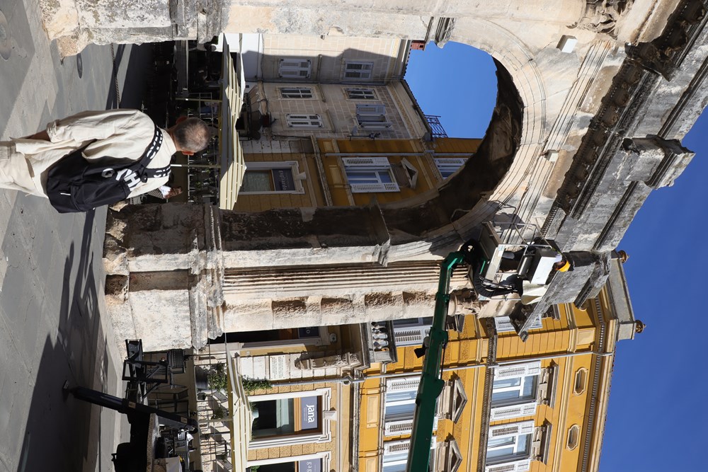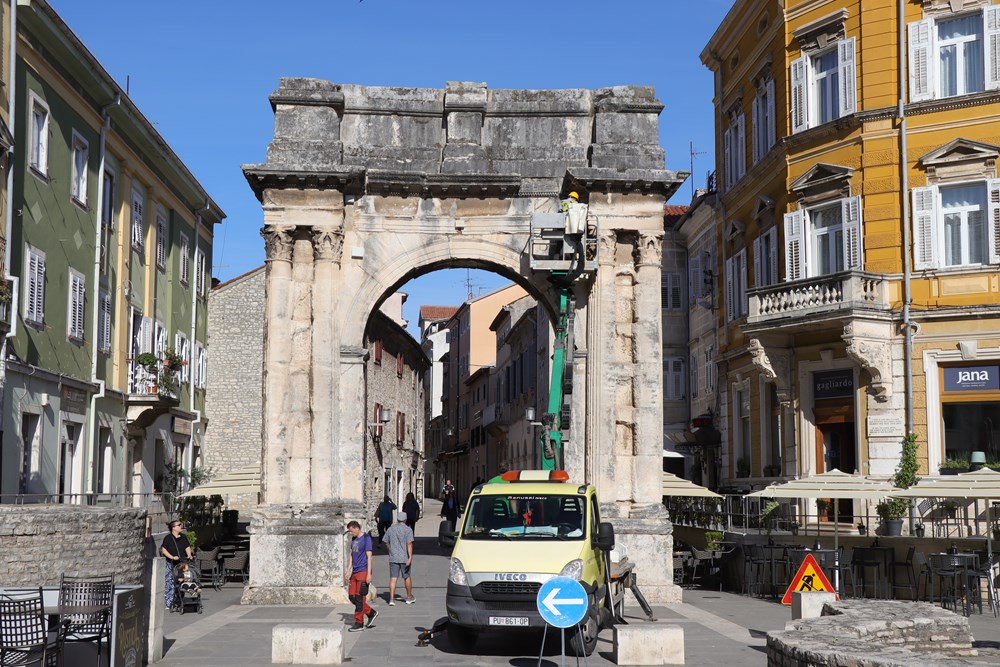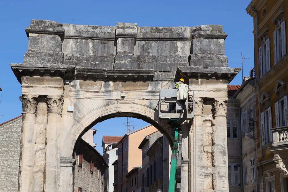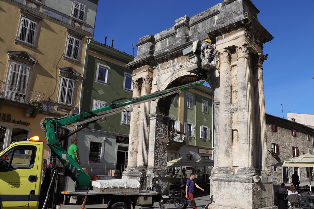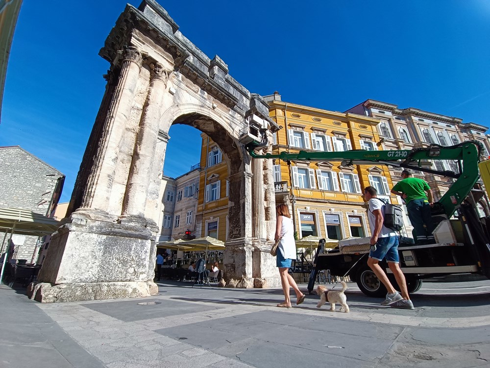 I baterije sofisticiranih senzora na Slavoluku Sergijevaca imaju svoj vijek trajanja. Stručnjaci Građevinskog fakulteta Sveučilišta u Rijeci, uz pomoć pulske Herculanee, "popeli" su se u srijedu ujutro na slavoluk da bi zamijenili baterije i provjerili stanje mjerača.