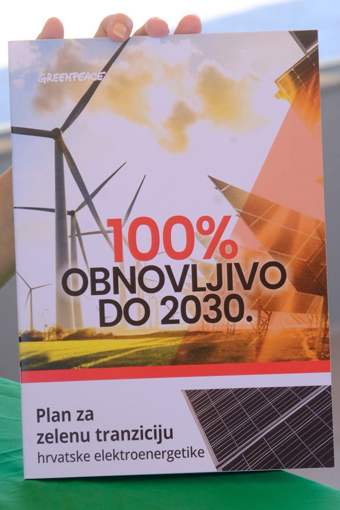 Greenpeace je ovom prilikom građanima predstavio i studiju "100% obnovljivi izvori do 2030.", koju je izradio tim stručnjaka pod vodstvom Gordana Krajačića sa zagrebačkog Fakulteta strojarstva i brodogradnje. Studija pokazuje da bi Hrvatska već do kraja desetljeća mogla u potpunosti preći na električnu energiju iz sunca i vjetra, umjesto da i dalje ulaže u fosilnu industriju.