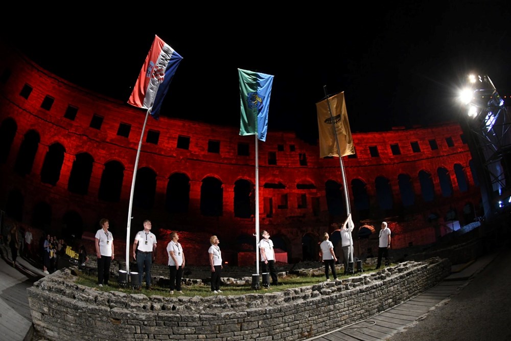 "Lijepu našu", kao i svečanu istarsku pjesmu "Krasna zemljo, Istro mila" izveo je Damir Urban, koji će uskoro gostovati koocertom u sastavu sezone Kazališta Ulysses na Malom Brijunu te potom u Malom rimskom kazalištu, a uz pratnju Luke TOmana na gitari, bio je tu i pulski zbor Praksa uz "Bella ciao", kao i energični bubnjari, a prije samoga otvorenja, uz crveni tepih nazočne je uveseljavao svojim nastupom Puhački orkestar grada Pule. Izvedba pjesme "Bella ciao" ispraćena je ovacijama publike, uz parolu "Smrt fašizmu, sloboda narodu". Članovi Saveza udruga antifašista Istre podigli su zastave Hrvatske i Istarske županije.
