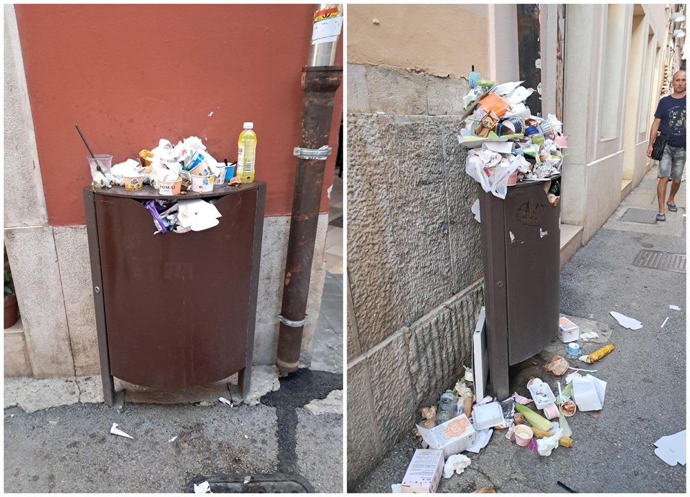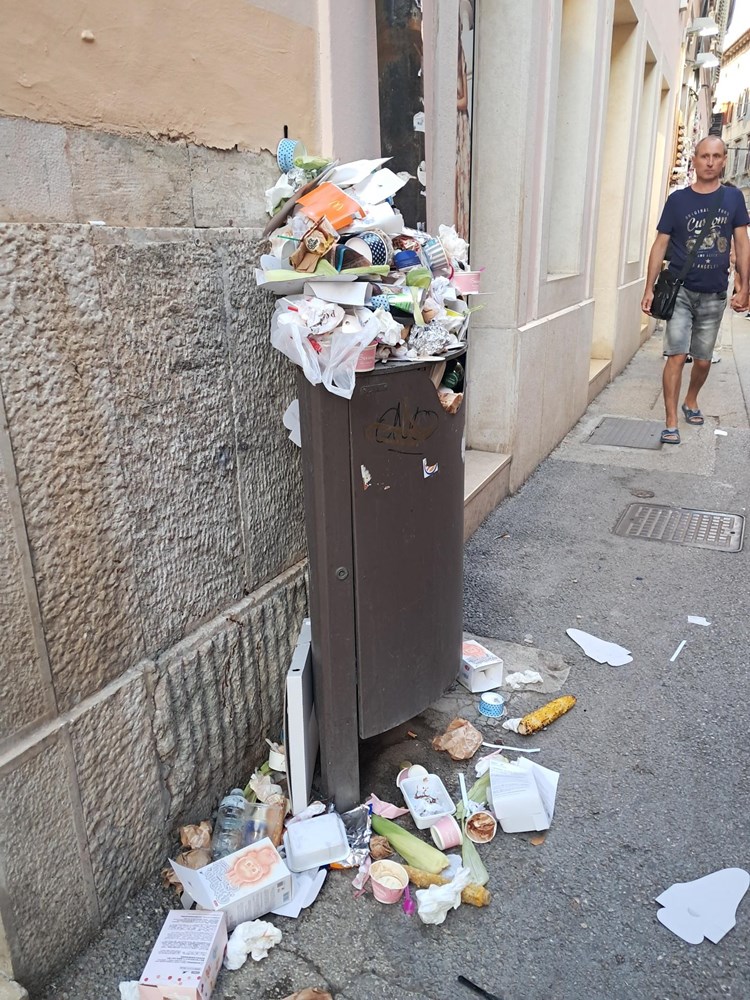 Čini se da je problem sveprisutan jer su kante prepune i na drugim lokacijama, što može ukazivati na nedovoljnu učestalost odvoza ili kapacitete, ali i na neodgovorno ponašanje dijela turista.