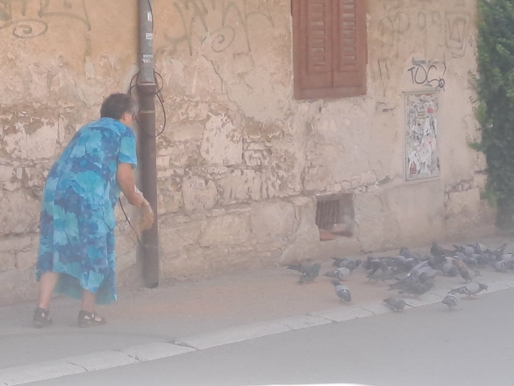 Da se može i želi uživati izvan ugostiteljskih objekata, pokazuju i oni gosti koji su predah i uživanje pronašli u gradskim parkovima, s debelom hladovinom. A da se izvan turizma događa cijeli jedan svijet koji s njime ima samo dodira, pokazala je gospođa koja ni ovog praznika nije zaboravila na golubove.