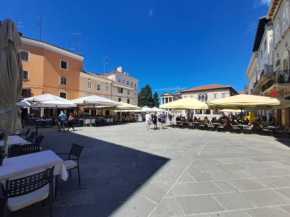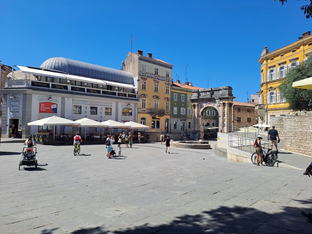 Da je u Puli praznik, moglo se vidjeti po pokojoj zastavi na pročeljima zgrada, a opću gradsku atmosferu bi najbolje mogli opisati kao - laganini. Broj onih koji su zasjeli na terase ugostiteljskih objekata gotovo je proporcionalan onom broju gostiju koji su gradom samo prolazili. Sudeći prema riječima ugostitelja, s kojima smo kratko porazgovarali, oni itekako osjećaju pad potrošnje gostiju te s tim u vezi očiti izostanak njemačkih gostiju posebno naglašavaju.