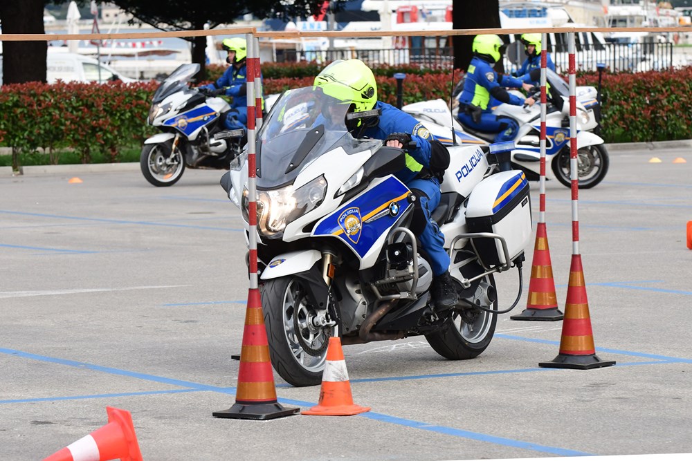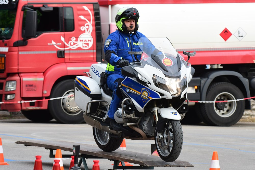 Na parkiralištu Karolina, ispod Arene, od 9 do 13 sati, na posebno pripremljenom poligonu, posjetitelji mogu pratiti vožnje i upoznati se s radom prometne policije.