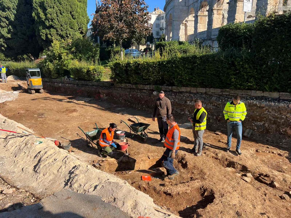 Ni nekoliko metara ispod pulske Arene, povijest je ponovno provirila na svjetlo dana. Tijekom radova na Šetalištu Nella Milottija, na dijelu prometnice koji prolazi kroz rekonstrukciju, pronađena je antička grobnica s ljudskim kostima i dvjema lubanjama. Potvrdili su nam to iz Arheološkog muzeja Istre. Na terenu su Erika Trbojević i Tomislav Franić, kustosi Arheološkog muzeja Istre koji pažljivo otkopavaju i dokumentiraju svaki detalj.