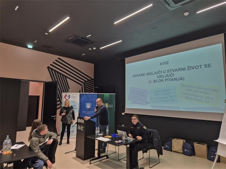 Policijska uprava istarska nastavila je obilježavanje Mjeseca borbe protiv ovisnosti kvizom znanja pod nazivom "Ekrane isključi, u stvarni život se uključi", održanim u prostorijama Coworking centra Pula. Kviz je organiziran u suradnji s Gradom Pula, Nastavnim zavodom za javno zdravstvo Istarske županije, Gradskim društvom Crvenog križa Pula i Obiteljskim centrom Istarske županije.