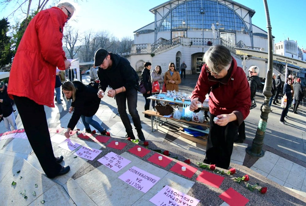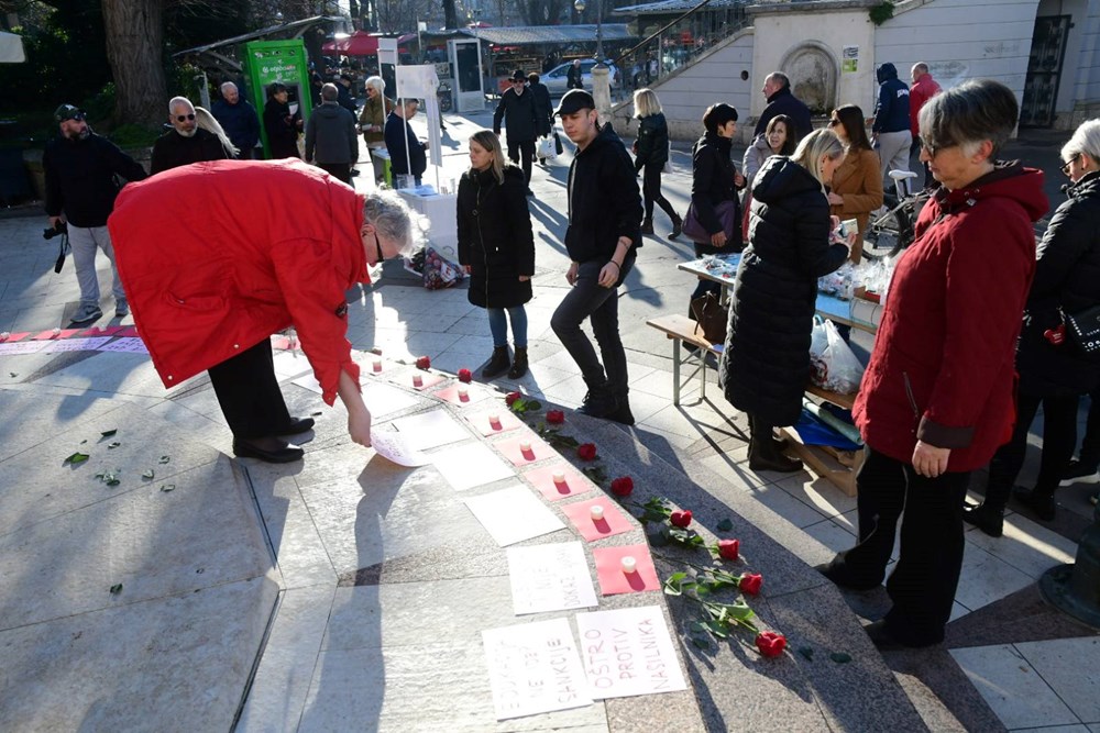 - Gaženje je danas i simboličko i doslovno. U Zagrebu se gaze ruže koje simboliziraju žene žrtve nasilja. A na to čitaju isprike sa papira ne gledajući u kameru, kao što ti ljudi ne gledaju u oči. Klečavci ne mole, već traže da se zabrani prekid trudnoće, zahtijevaju da se žene oblače čedno, da ne 'izazivaju'... Upućujemo poziv vlastima na konkretne poteze u prevenciji i sankcioniranju počinitelja, kao i javnu osudu javnih poziva na ograničavanje ženskih prava, poručio je Mateo Žufić, član Radničke fronte.