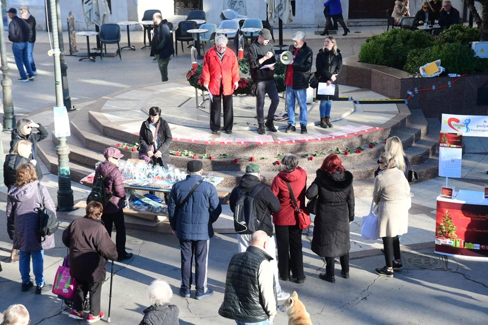 - Radnička fronta je odlučila da u ime svojih članova ovdje lokalno reagiramo, kao i u ime svih Puljana i Puljanki, na ovo što se zbilo u Zagrebu. Bila je to zadnja kap koja je prelila čašu - gaženje ruža na glavnom trgu u Zagrebu, prilikom koje je jedna osoba gazila po ružama koje su zapravo bile stavljanje u počast 18 ubijenih žena ove godine u našoj zemlji, rekla je Dubravka Kovačević, članica Radničke fronte Pula.