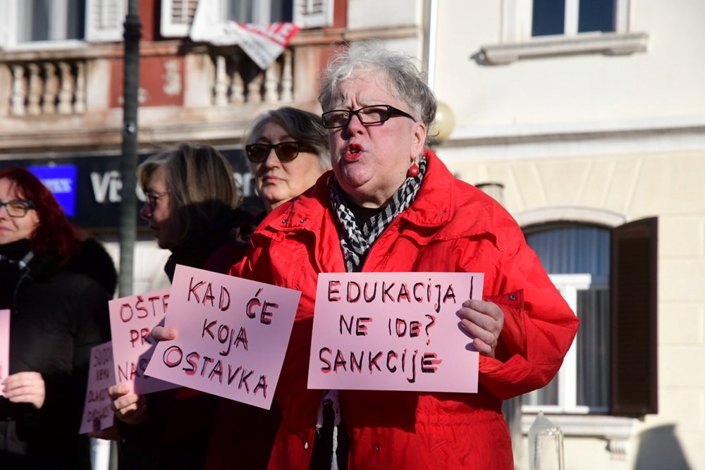 Radnička fronta Istre i Kvarnera jutros je na pulskom Narodnom trgu održala performans u znak prosvjeda protiv nasilja nad ženama, femicida te svih gesta i akcija koje dovode do kršenja ženskih prava. Među ostalim, bila je to i reakcija na šokantan događaj u Zagrebu, kada je jedan od klečavaca svojim postupkom degradirao ne samo ubijene žene, već i sve žene u društvu.