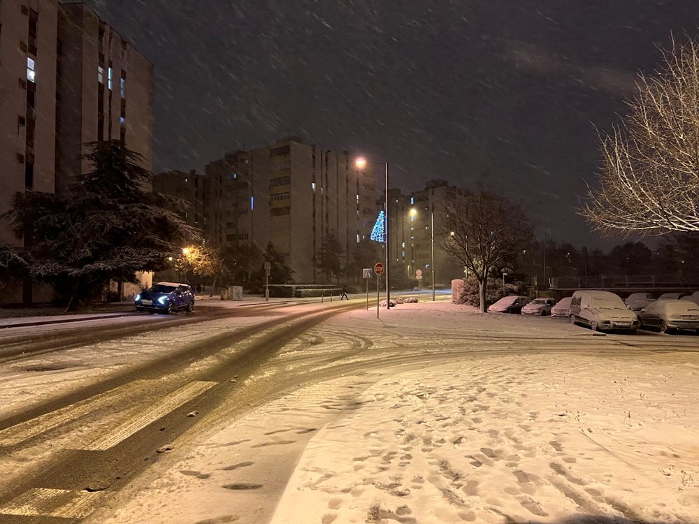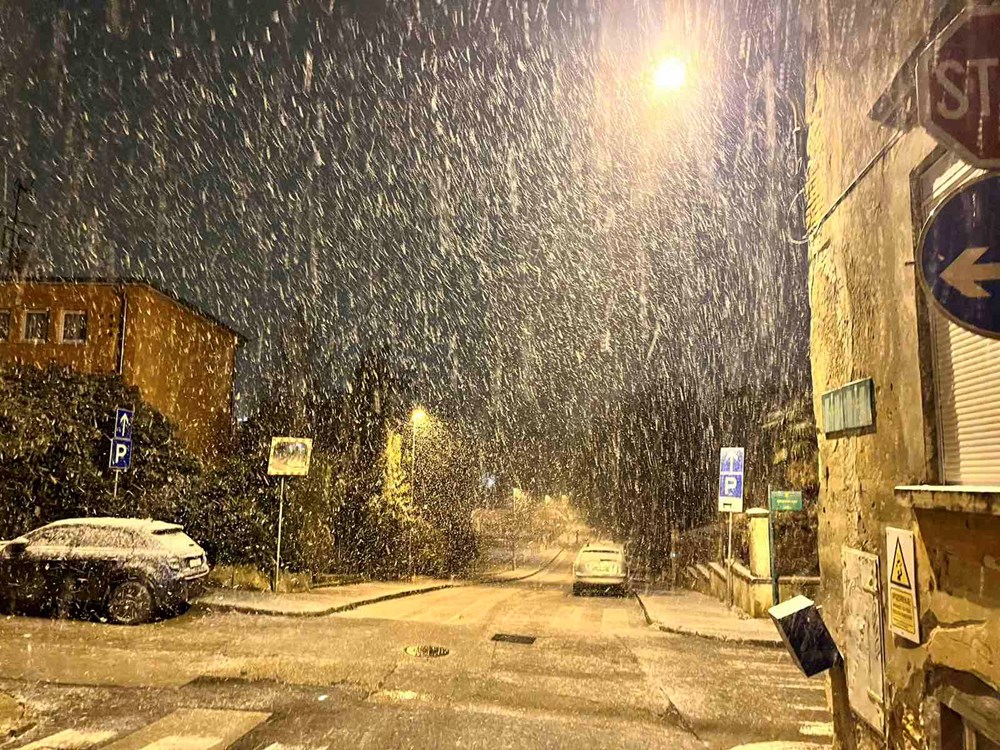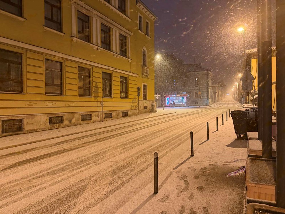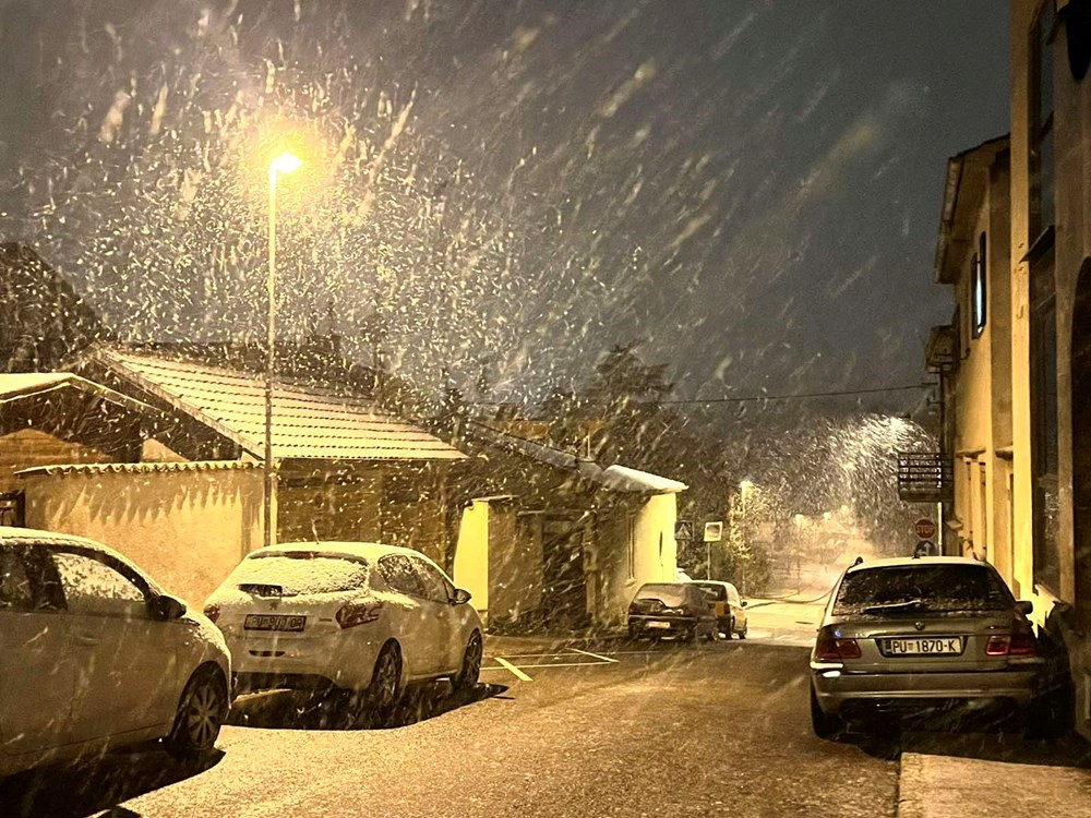 No, s padom mraka snijeg se ponovno pojačava. Temperature su u ovim trenucima oko nule, a snježne pahulje sve gušće zahvaćaju grad. Snijeg se zadržava na kolnicima, nogostupima i parkiranim vozilima, a dijelovi Pule postupno se ponovno zabjeljuju.