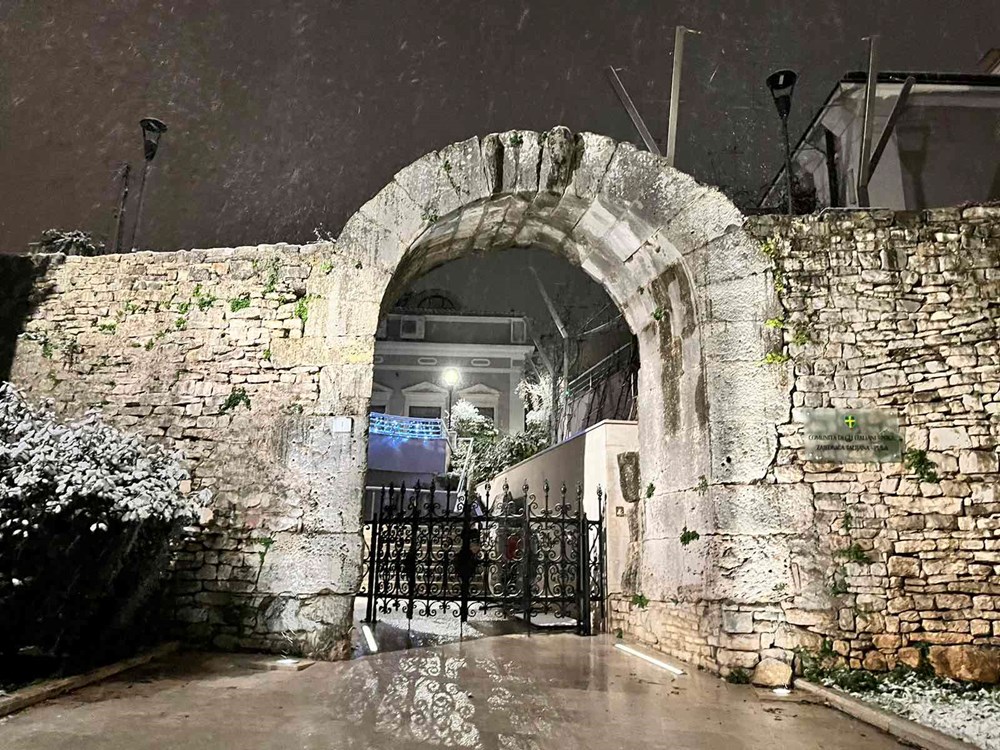 Pula je današnji dan započela snijegom koji je u jutarnjim satima iznenadio građane i donio rijedak zimski ugođaj. Tijekom prijepodneva i ranog poslijepodneva oborine su oslabjele, snijeg se povremeno miješao s kišom i susnježicom, a činilo se kako se vremenska situacija privremeno smiruje.