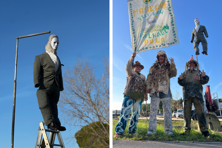Na pulskom parkiralištu Mandrač danas je postavljena "Hudoba z Kaštijuna", velika karnevalska lutka poznatija kao pust, simbol svih prošlogodišnjih nedaća. Ovo je prvi put da je pust postavljen upravo na Mandraču, jer se zbog radova na dosadašnjoj uobičajenoj lokaciji, kraj Gardelina, moralo pronaći novo mjesto za njegov "dom". Uz cestu su ga podignuli članovi karnevalske grupe Veli Vrh - Valmade, koja već godinama čuva i njeguje običaje pulskog karnevala te aktivno sudjeluje u svim maškaranim događanjima.