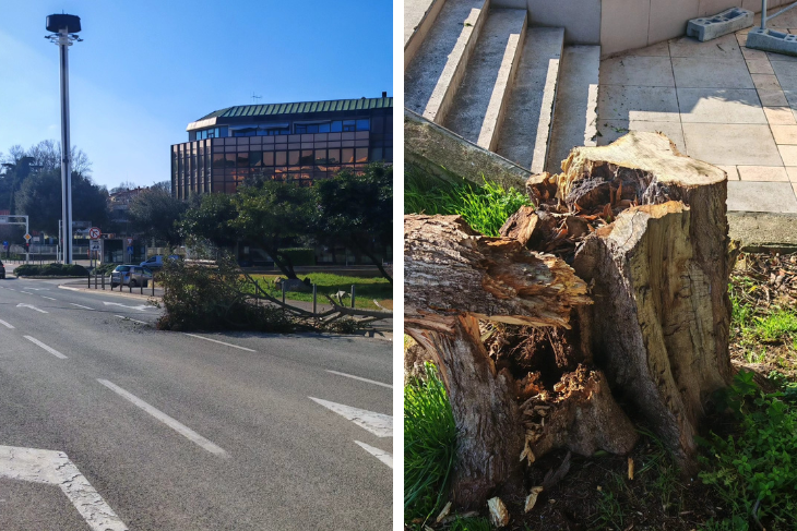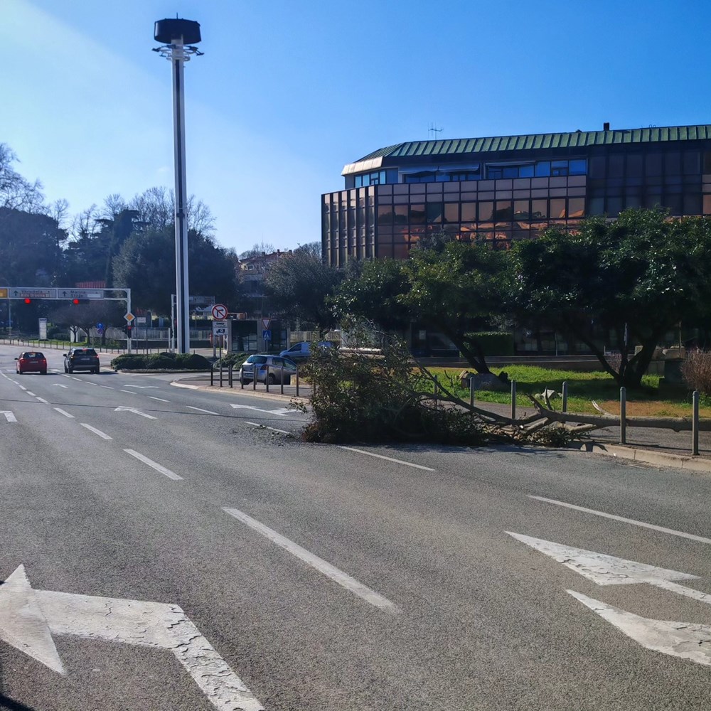 U blizini autobusne stanice na Trgu Republike u Puli, preko puta zgrade MUP-a, danas se srušilo stablo na kolnik.