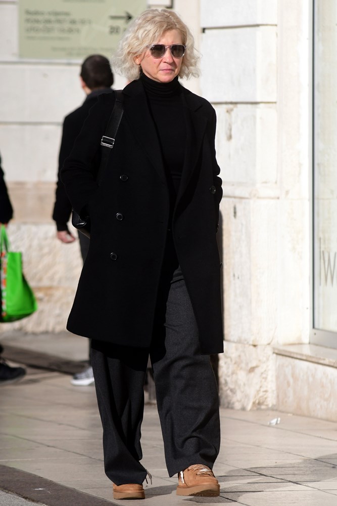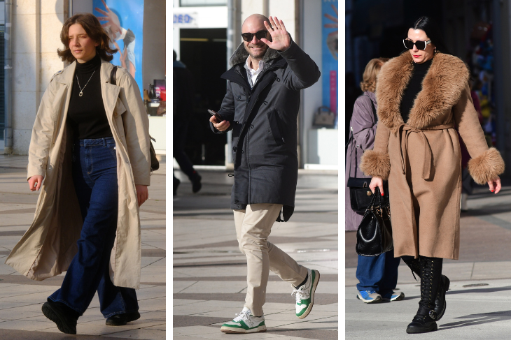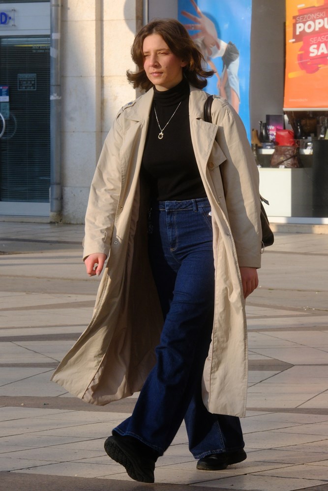 Promjenjivo vrijeme koje ovih dana vlada gradom nije ni posebno toplo ni hladno pa se na ulicama često mogu vidjeti slojevite kombinacije. Samtene hlače, koje su se ponovno vratile u fokus, pojavljuju se kao praktičan izbor za prijelazno razdoblje, dok oversized kaputi, dugi i ravnih linija, dominiraju siluetama.