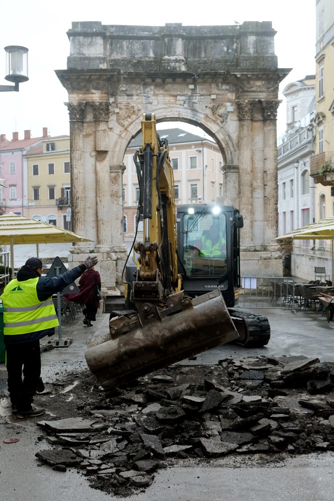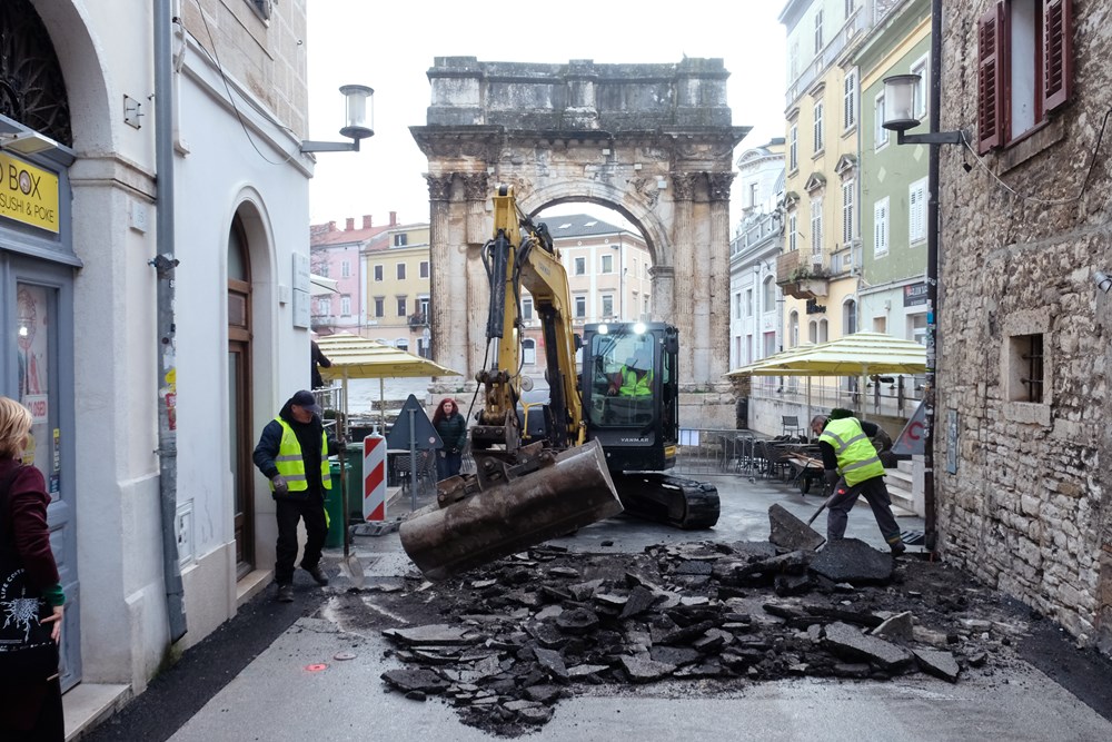 - Znajući da Grad Pula u ovom trenutku nema spreman projekt za rekonstrukciju te ulice, za ono kako bi ona trebala izgledati da zablista u svom punom sjaju, odlučili smo da je potrebno napraviti privremeno rješenje i urediti ju. Jer ovako kako je izgledala do jučer, za mene je bila katastrofa. Ono što ćemo sada napraviti ipak nije samo uređenje. Ovaj trenutak kada skidamo asfalt, kada ćemo na nekim mjestima ići i dublje, iskoristit ćemo kako bismo ulicu snimili na način kao što to nije bilo napravljeno do sada. Provest će se fotogrametrijsko snimanje, a svi radovi bit će pod konstantnim nadzorom koji provodi Arheološki muzej. Tu će nam dolaziti i kolega iz Konzervatorskog ureda, s kojima moram reći da smo ostvarili odličnu suradnju i našli zajednički jezik kako ćemo provoditi mjere koje su potrebne da se naš grad uređuje, a da se istovremeno čuva naša baština, napominje Grbin.