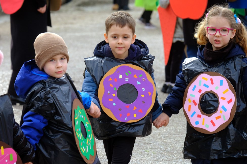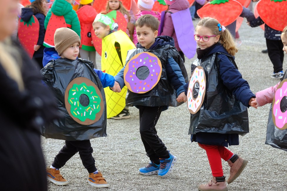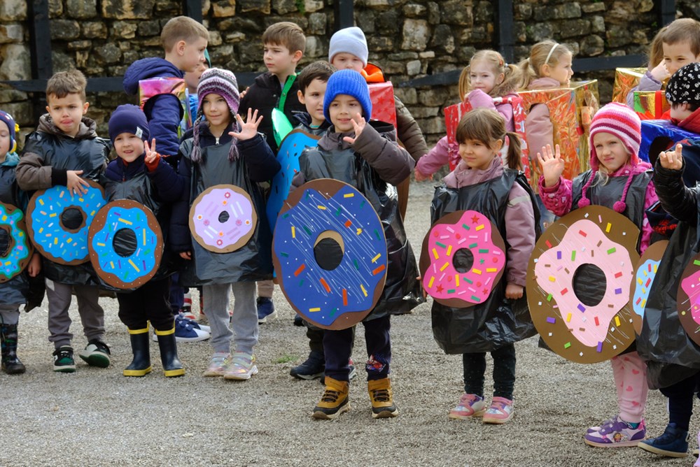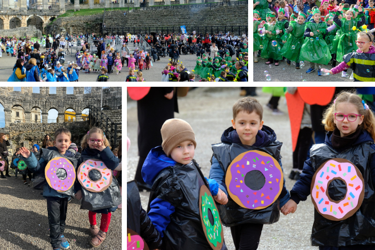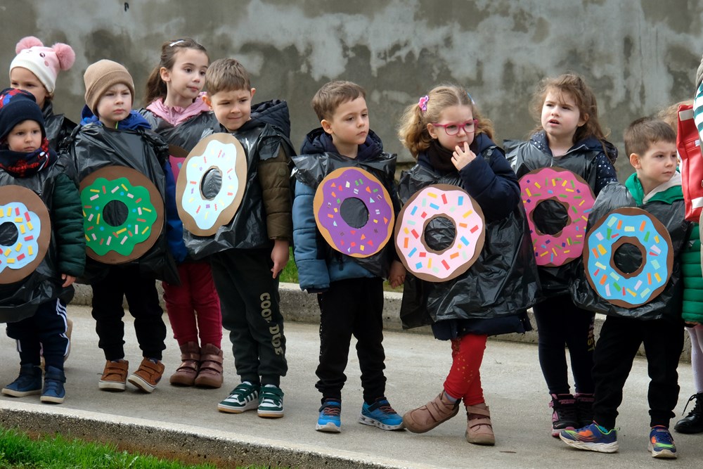 Kako izgledaju mlade dame i gospoda iz doba Austro-Ugarske pokazala su djeca iz Zečića i ježića iz PO Rožica, a s Kaštanjera je stigla - voćna salata. Donuti i orkestar bili su iz DV Pula - PO Centar, a Zvjezdice, skupina Lavići, bili su Indijanci. Zeleni gregi došli su iz DV-a Topolino. Iz DV-a Mali svijet skupine Zvončići, Ježići, Bubamare, Tratinčica, Suncokret, Mrkvići te Šeširići i Balončići postali su mali šumski, ali i zdrava hrana, bubamare, veseli pituri, suncokreti, pandići te astronauti i rakete.
