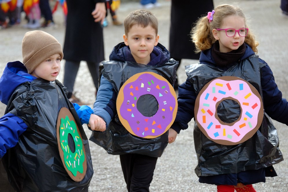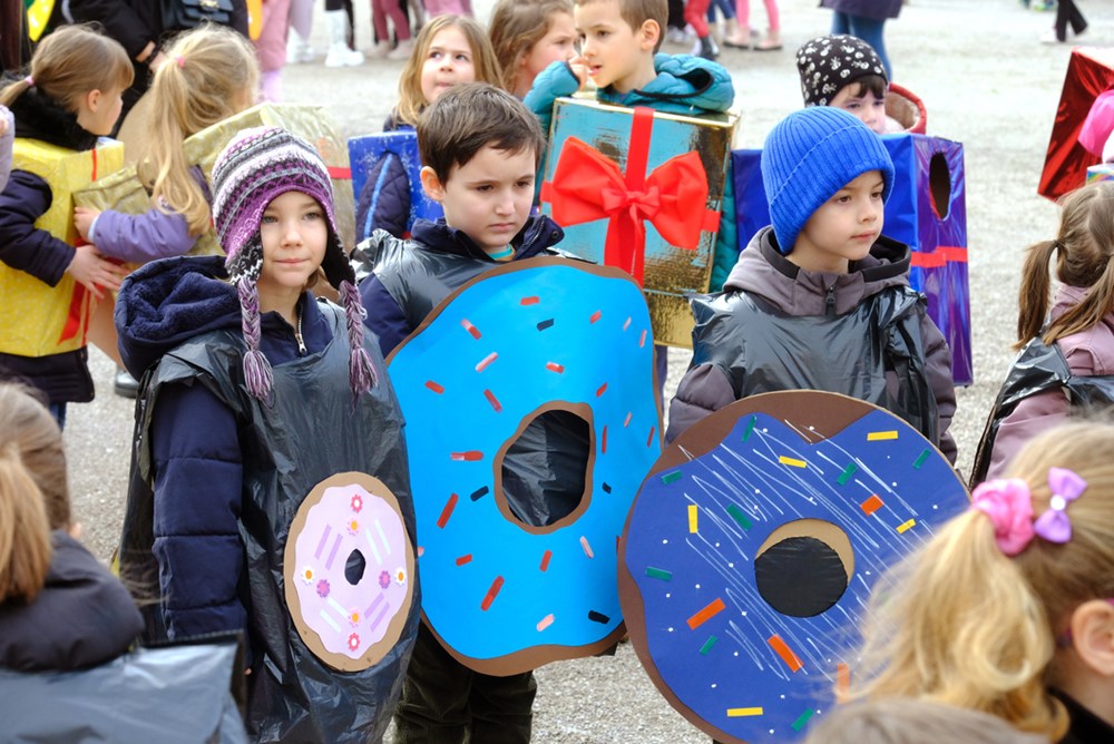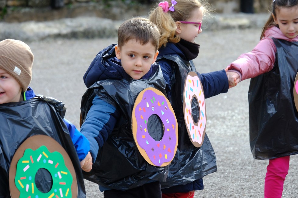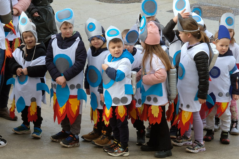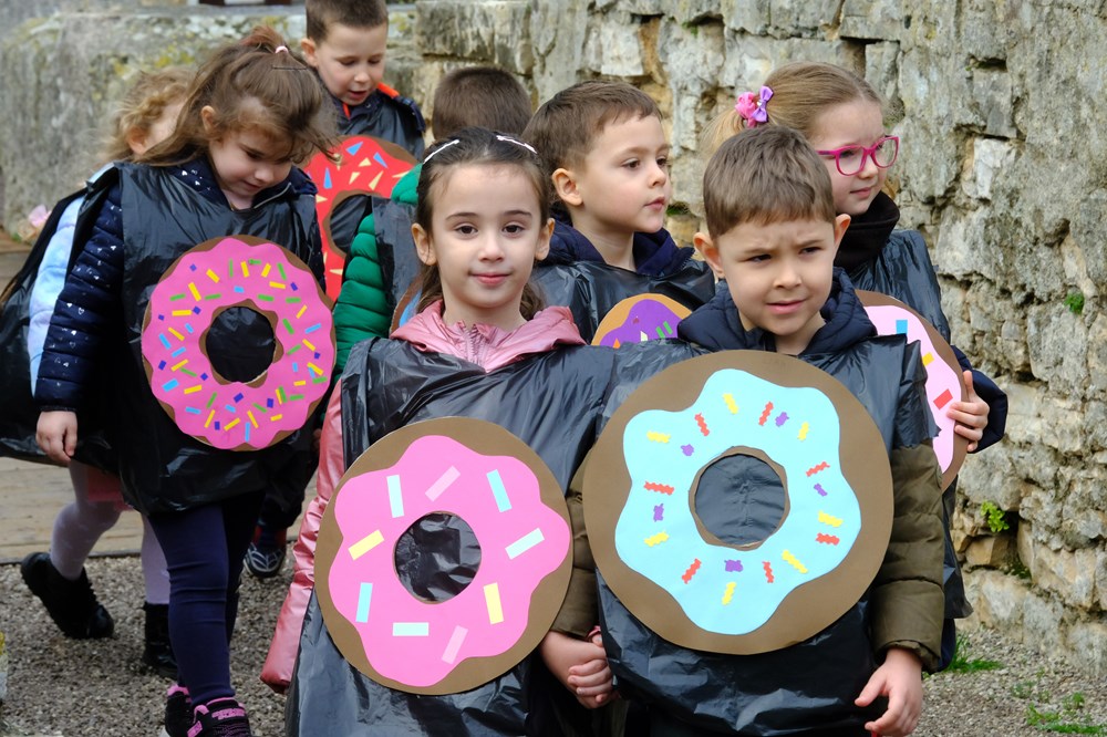 Kako izgledaju mlade dame i gospoda iz doba Austro-Ugarske pokazala su djeca iz Zečića i ježića iz PO Rožica, a s Kaštanjera je stigla - voćna salata. Donuti i orkestar bili su iz DV Pula - PO Centar, a Zvjezdice, skupina Lavići, bili su Indijanci. Zeleni gregi došli su iz DV-a Topolino. Iz DV-a Mali svijet skupine Zvončići, Ježići, Bubamare, Tratinčica, Suncokret, Mrkvići te Šeširići i Balončići postali su mali šumski, ali i zdrava hrana, bubamare, veseli pituri, suncokreti, pandići te astronauti i rakete.