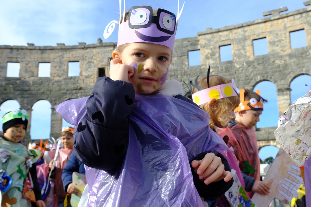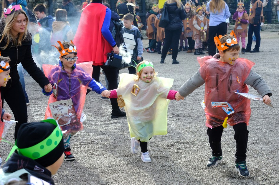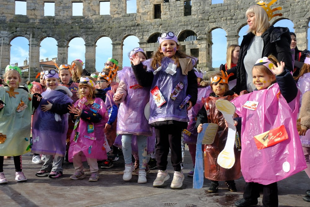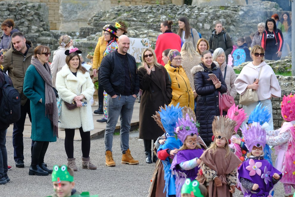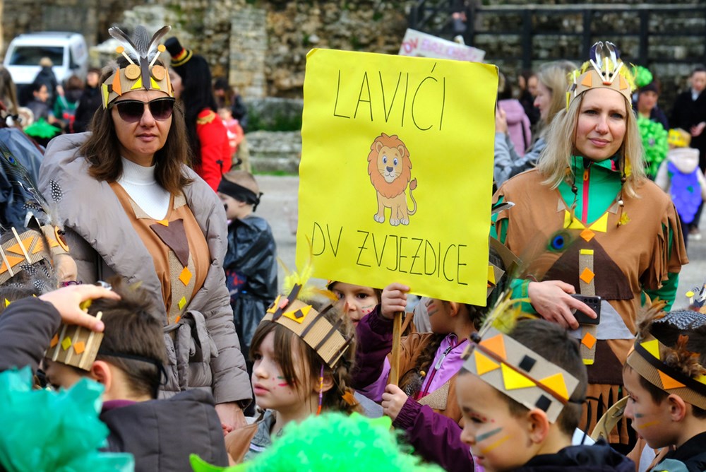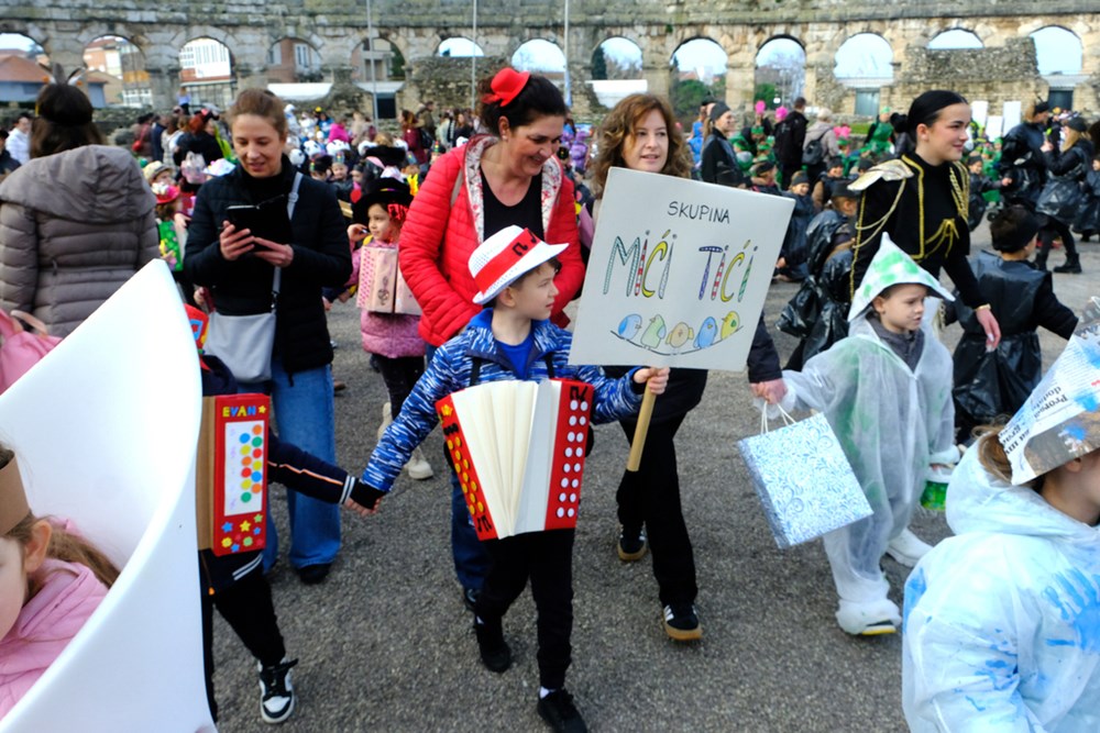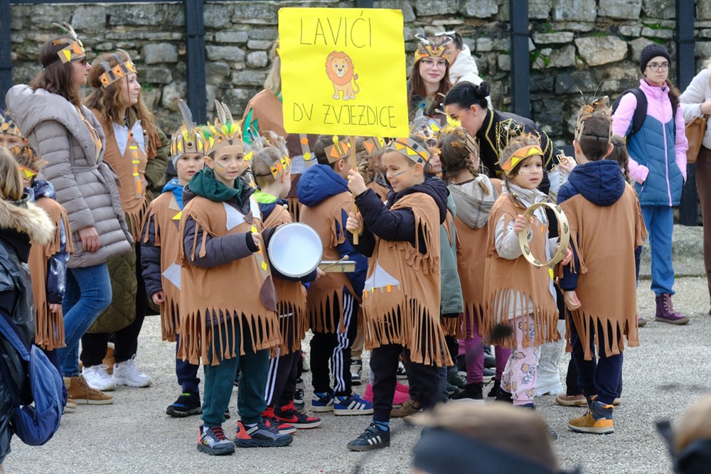 I došao je taj dan. Unatoč kišnim danima, tjednima koji su se redali gotovo od samoga početka 2026., petak 13. osvanuo je (recimo) sunčan. Suh, bez vjetra, taman prigodan da brojne maškarane skupine defiliraju u Areni i pokažu što su to kreirali zajedno sa svojim odgojiteljima/cama, nastavnicima i nastavnicama te roditeljima, te kako je lako dobiti novo lice/naličje za najveselije godišnje doba.