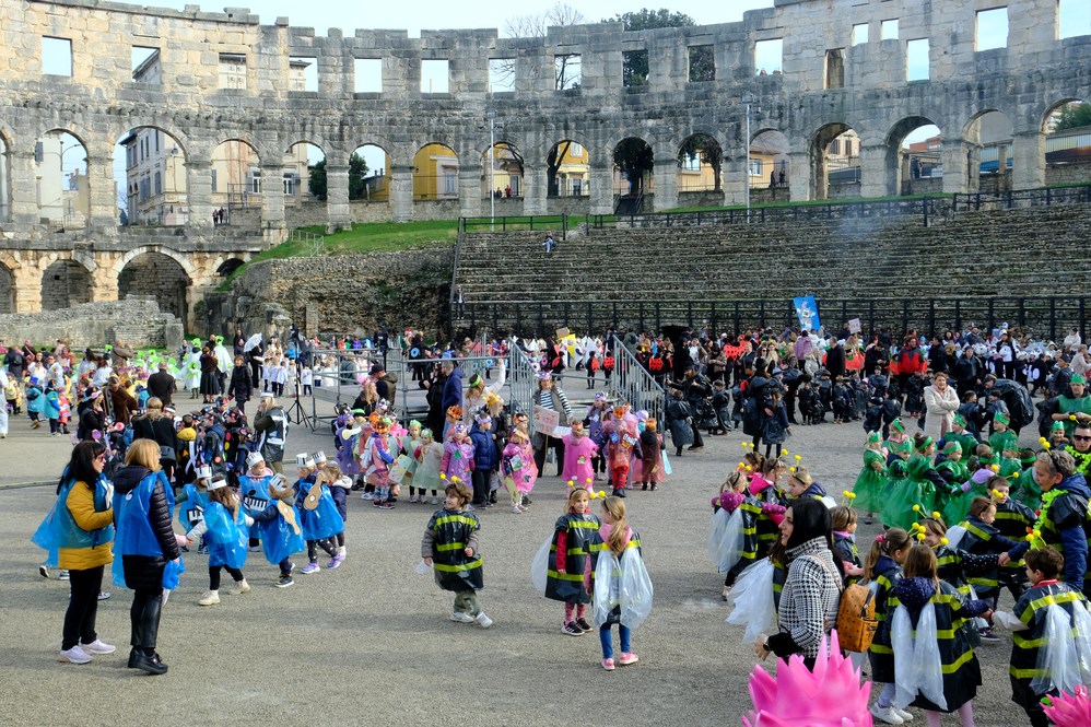 U organizaciji Društva Naša djeca, sudjelovalo je 60 skupina - 46 maškaranih grupa, odnosno 1.277 djece dječjih vrtića i osnovnih škola Pule i šire okolice, a za animaciju se pobrinula Zemlja zabave. Nakon formalnog dijela - predaje ključeva grada i susreta s gradonačelnikom Peđom Grbinom, ostatak programa bio je u znaku defilea, pjesme i šarenila, mašta je sada zbilja napravila svašta.