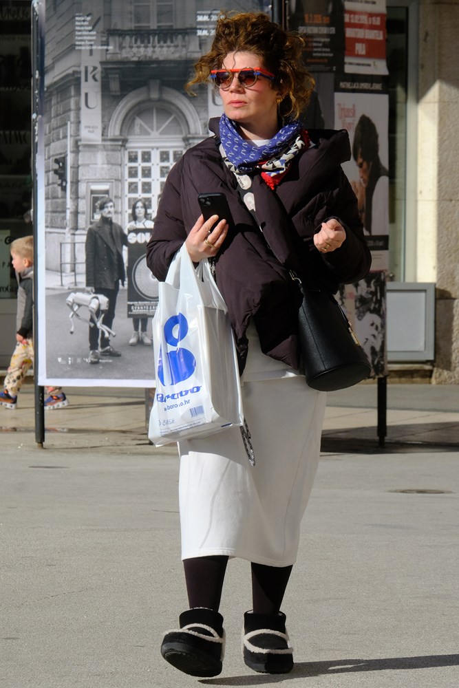 Gradom dominiraju elegantne, ali i ležerne kombinacije. Haljinama se već priziva proljeće koje nije tako daleko, a sve više viđamo i tanje jakne te prsluke kao prijelazne komade. Posebno su upečatljivi modni dodaci jedne prolaznice koja je u smjelom i nesvakidašnjem izdanju uskladila maramu i otkačene naočale. Smionost se može očitovati i kroz igru boja, koja će s naznakama proljeća sve više dominirati. Ipak, zima se još ne predaje u potpunosti pa se šalovi i kape i dalje rado nose, uklopljeni u svakodnevne kombinacije.