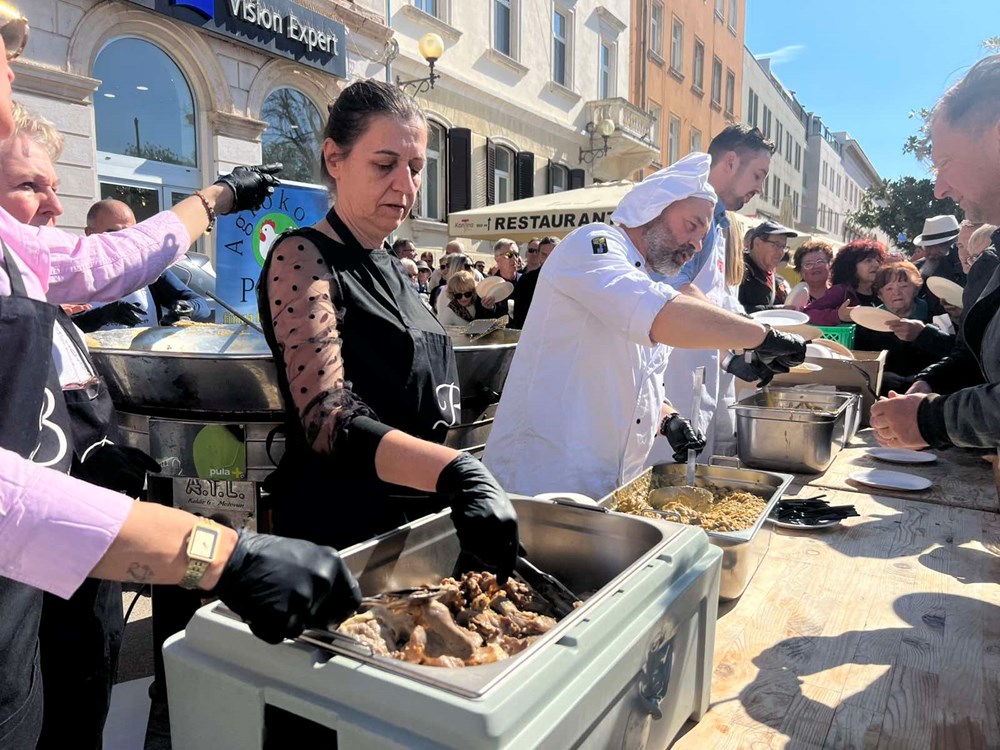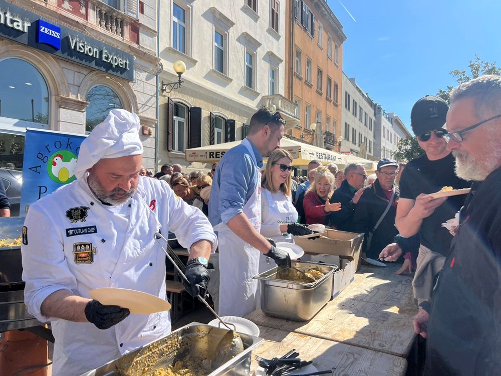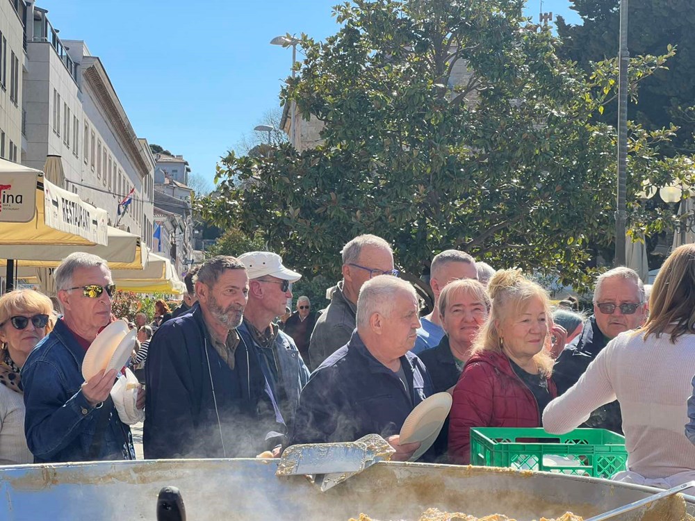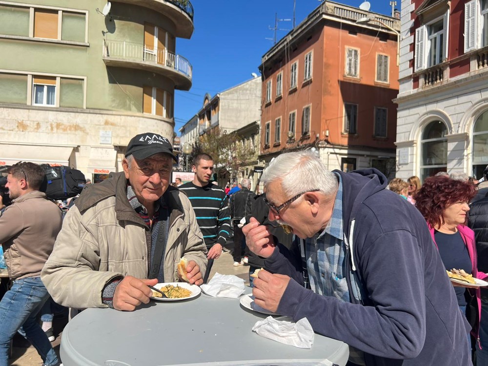 - Bura se stišala, tako da su ljudi iskoristili ovo sunce i lijepo vrijeme da dođu na tržnicu. Prigodno, priprema se tradicionalna fritaja s divljim šparugama koju organizira Grad Pula. I više smo nego zadovoljni, kao što vidimo, cijeli trg je krcat. Uvjeren sam da će se jako brzo podijeliti, da će ljudi uživati, rekao je prije nego se krenulo s podjelom porcija. Uputio je i čestitku sugrađanima.