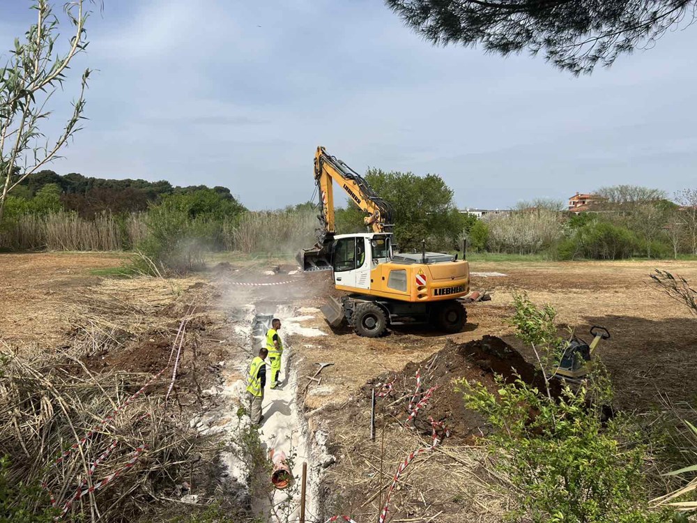 Na više punktova duž trase raspoređeni su bageri i druga teška mehanizacija, dok su radnici angažirani na različitim dijelovima kolnika.