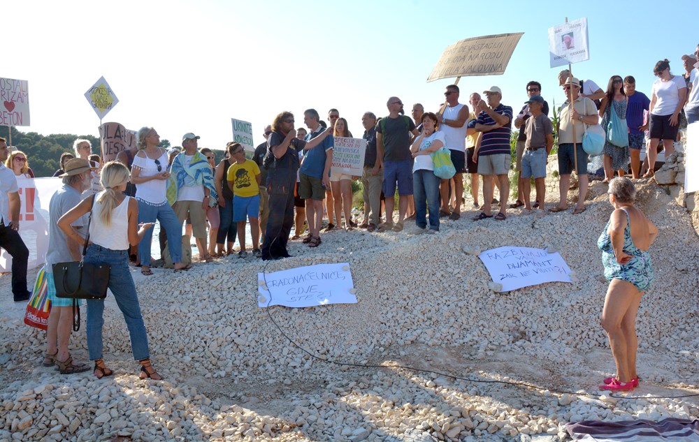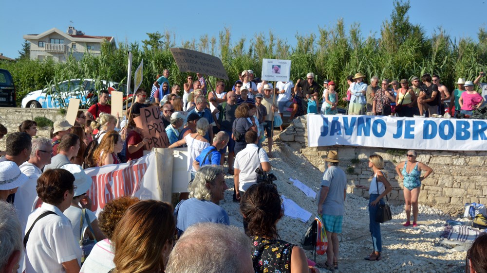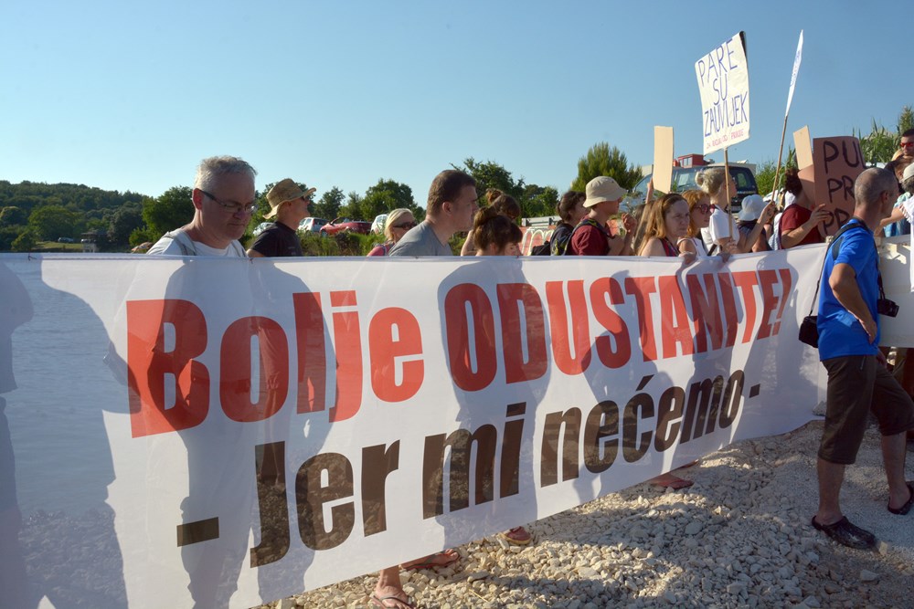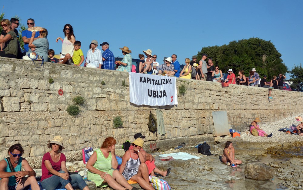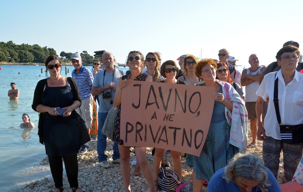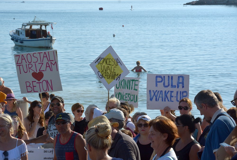 U uvali Valovine je danas popodne, unatoč jako suncu i visokim temperaturama, održano protestno kupanje koje je organizirala inicijativa građana za očuvanje uvale Valovine u suradnji sa Zelenom Istrom. Tristotinjak Puljana i Puljanki okupilo se i okupalo u pješčanoj uvali u znak prosvjeda. Građani su tako poručili gradskoj vlasti da je uvala Valovine javno dobro te da se plaža mora vratiti u stanje u kojem je bila prije početka radova. ( C. BILIĆ)