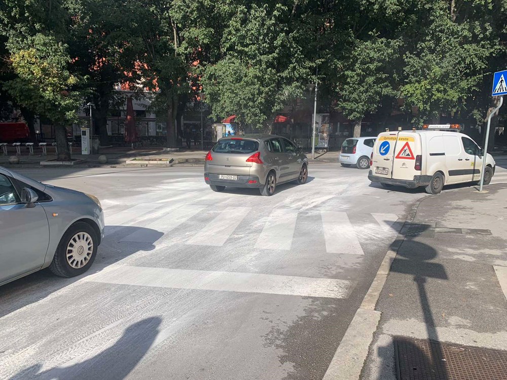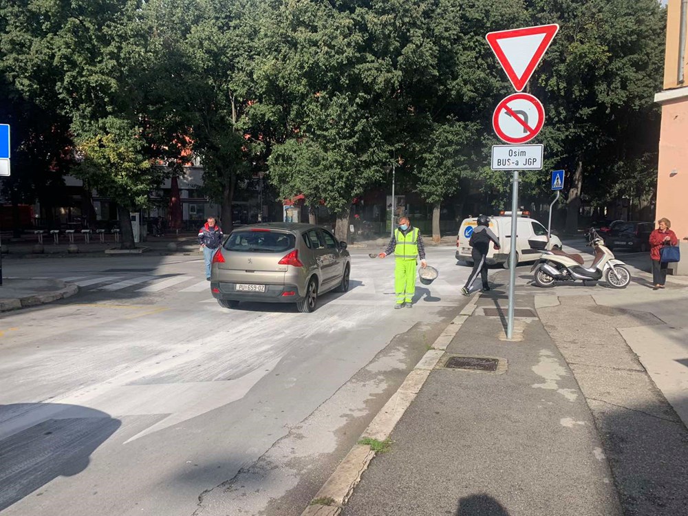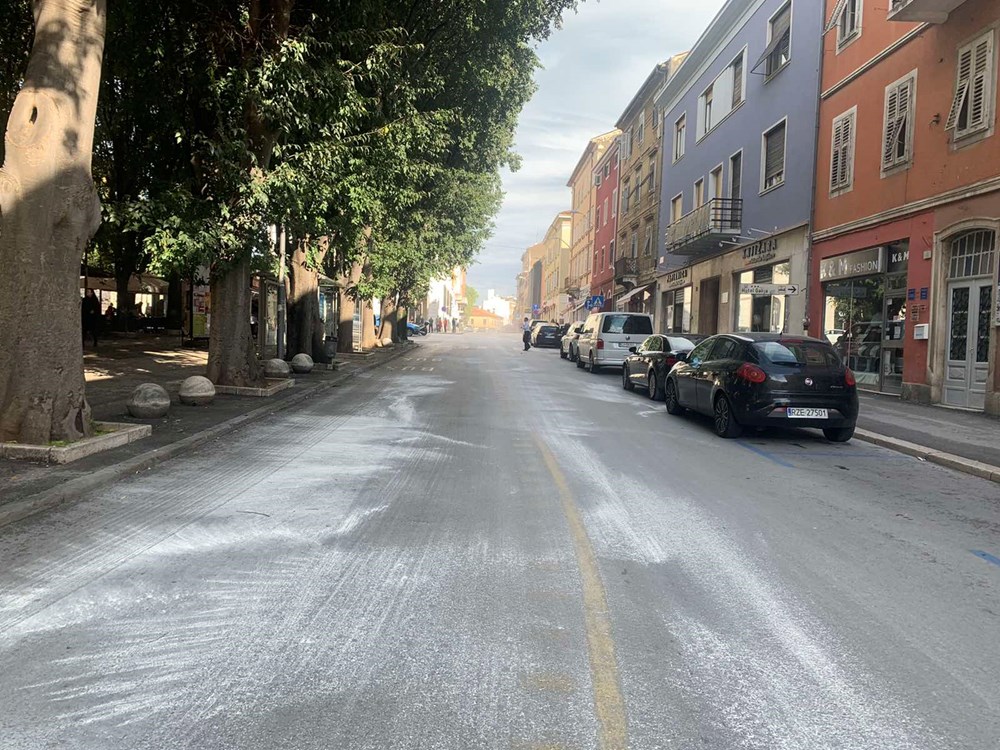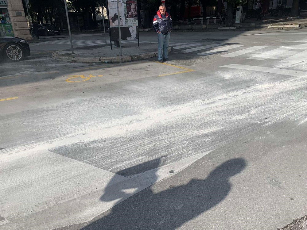 Masna mrlja odmah je posuta bijelom prahom kako bi se izbjegla veća nezgoda ili pad prolaznika u toj ulici u središtu grada.